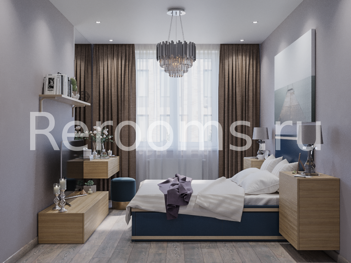 Стиль контемпорари в оформлении жилого пространства четко отвечает современным требованиям комфорта и функциональности. Такая стилистика предоставляет большую свободу в выборе материалов, мебели и декора. Интерьер данной квартиры выполнен в светлых тонах, здесь присутствуют бежевый, белый и насыщенные оттенки синего цвета. Для пола дизайнеры выбрали ламинат под натуральное дерево. Он привносит особое тепло и помогает создать в квартире уютную атмосферу. Разноплановые светильники – эффектный способ декора, придающий каждой зоне квартиры свой неповторимый характер. Для кухни дизайнеры подобрали лаконичную и функциональную мебель, которая идеально соответствует основной стилистике квартиры.