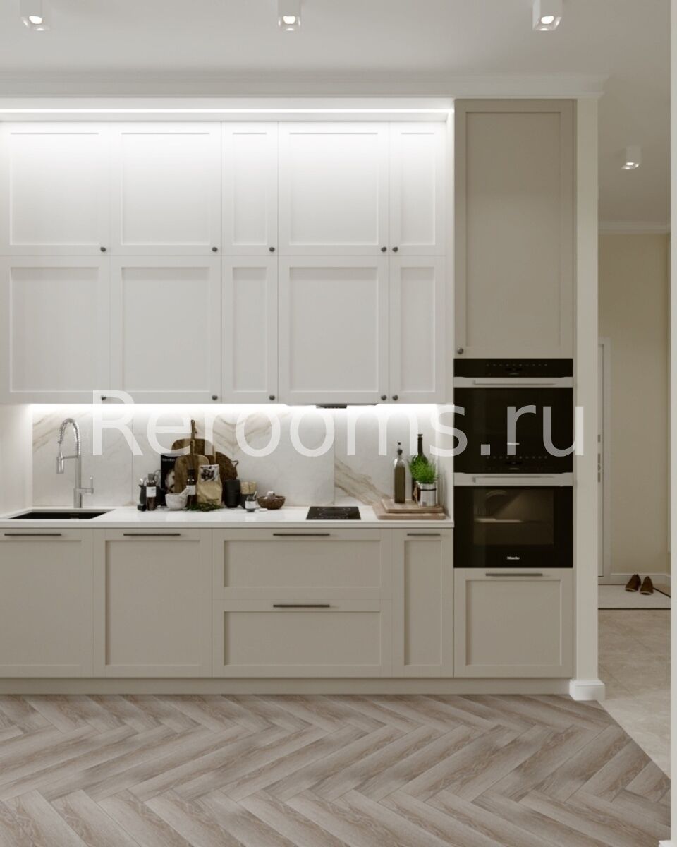 Дизайн этой квартиры выдержан в современном стиле. Цветовая гамма с использованием белых, приглушенных розовых бежевых тонов делает интерьер ультрамодным и красивым. Интересная архитектура пространства, комбинация различных материалов и оригинальный световой сценарий - все это работает на поддержание концепции современного дизайна.