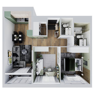 Фото № 2: Дизайн-проект трехкомнатной квартиры 70.0  м² Современный стиль для ЖК Речной Парк 2