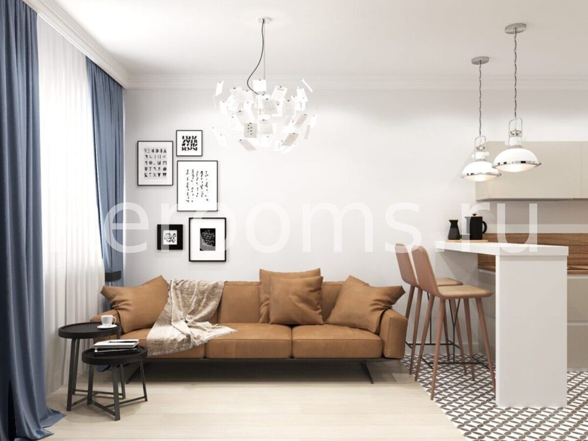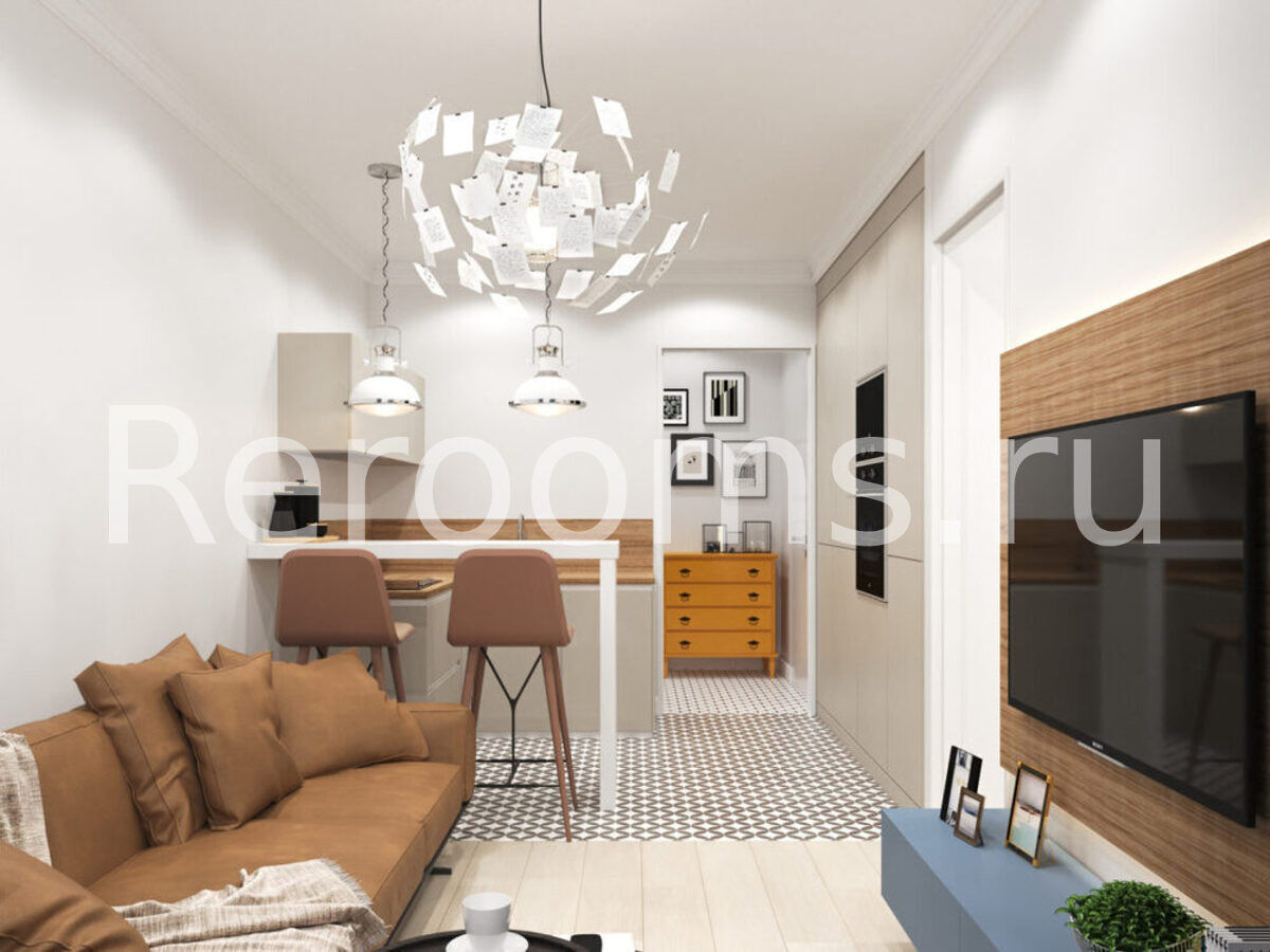 Фото № 1: Дизайн-проект квартиры-студии 31.74  м² Скандинавский стиль для ЖК Седьмое небо