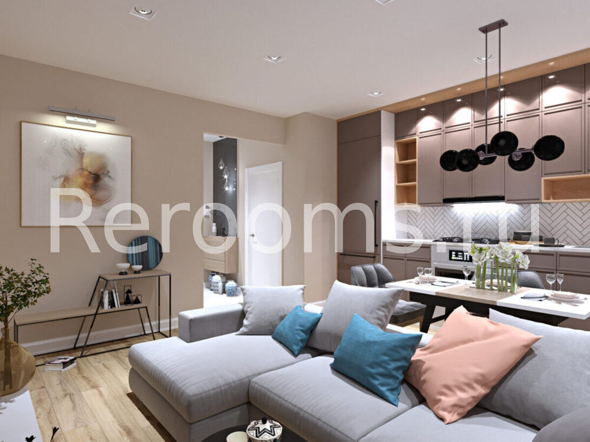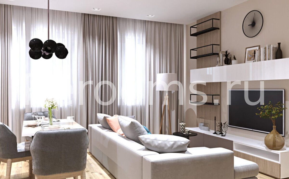 Фото № 2: Дизайн-проект евро трехкомнатной квартиры 66.14  м² стиль Модернизм для ЖК Седьмое небо