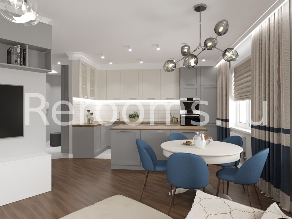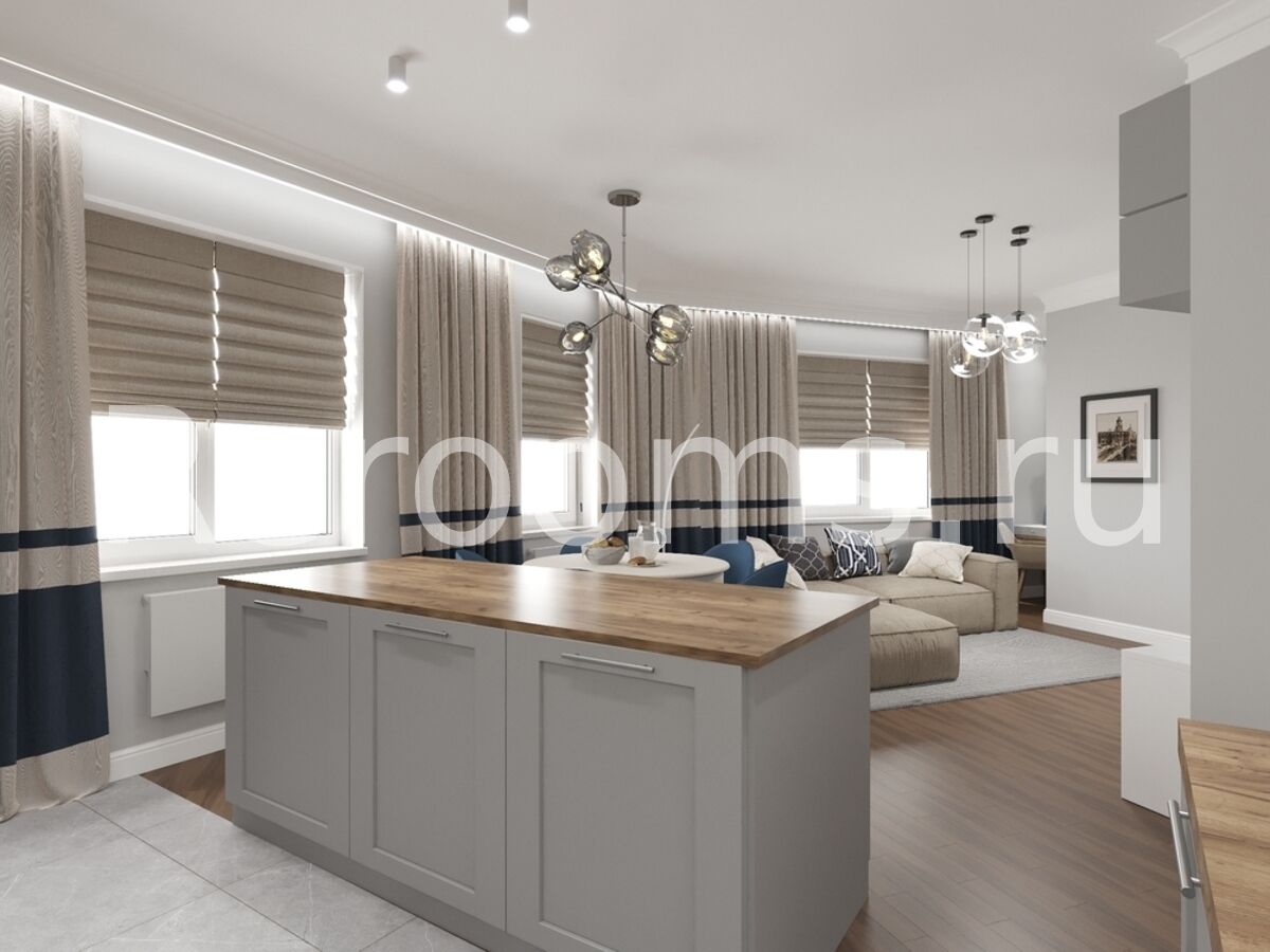 Дизайн-проект трехкомнатной квартиры выполнен в модном современном стиле. Светлая цветовая гамма с насыщенными акцентами делает интерьер более структурированным и эстетически привлекательным. Основное пространство визуально поделено на две функциональные зоны - кухни и гостиной при помощи острова. Такой прием позволяет разделить пространство, не утяжеляя его. Дизайн кухни достаточно минималистичен. Лаконичный кухонный гарнитур разместили вдоль двух стен, оставив максимум свободного пространства. Спальня и детская комната полностью отвечают требованиям по функционалу и эстетике.