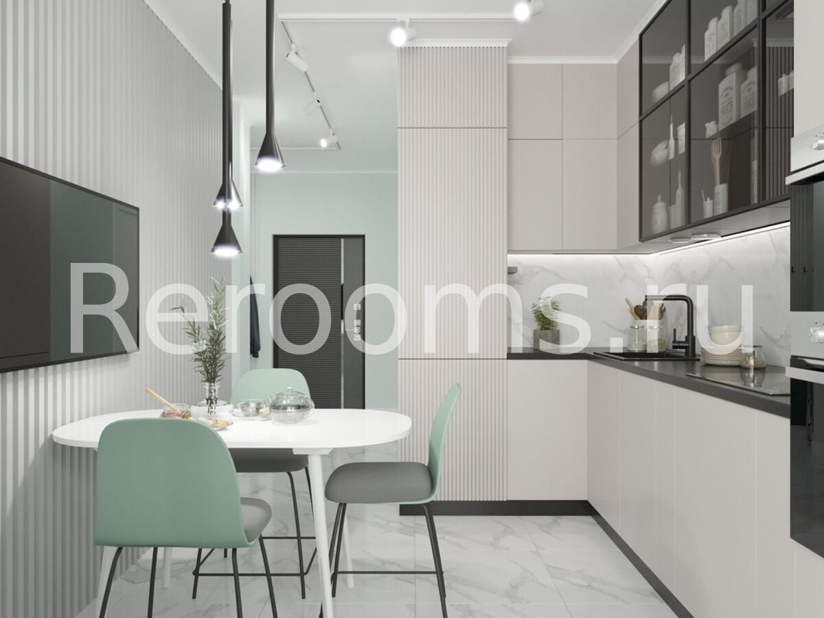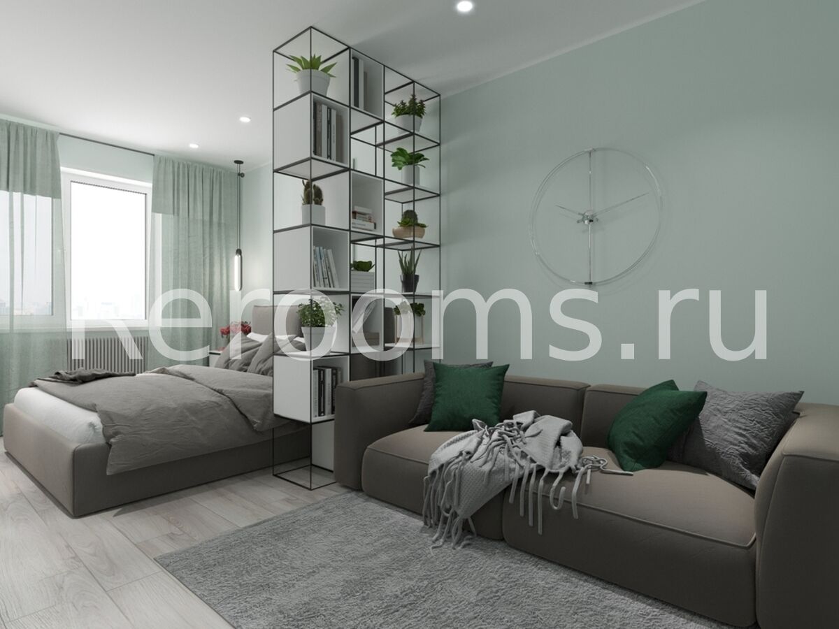 Дизайн этой двухкомнатной квартиры выдержан в современном стиле. Сдержанная цветовая гамма с использованием приглушенных тонов серого, зеленого и розового делает помещение ультрамодным и красивым. Интересная архитектура пространства, комбинация различных материалов и оригинальный световой сценарий - все это работает на общую концепцию интерьера.