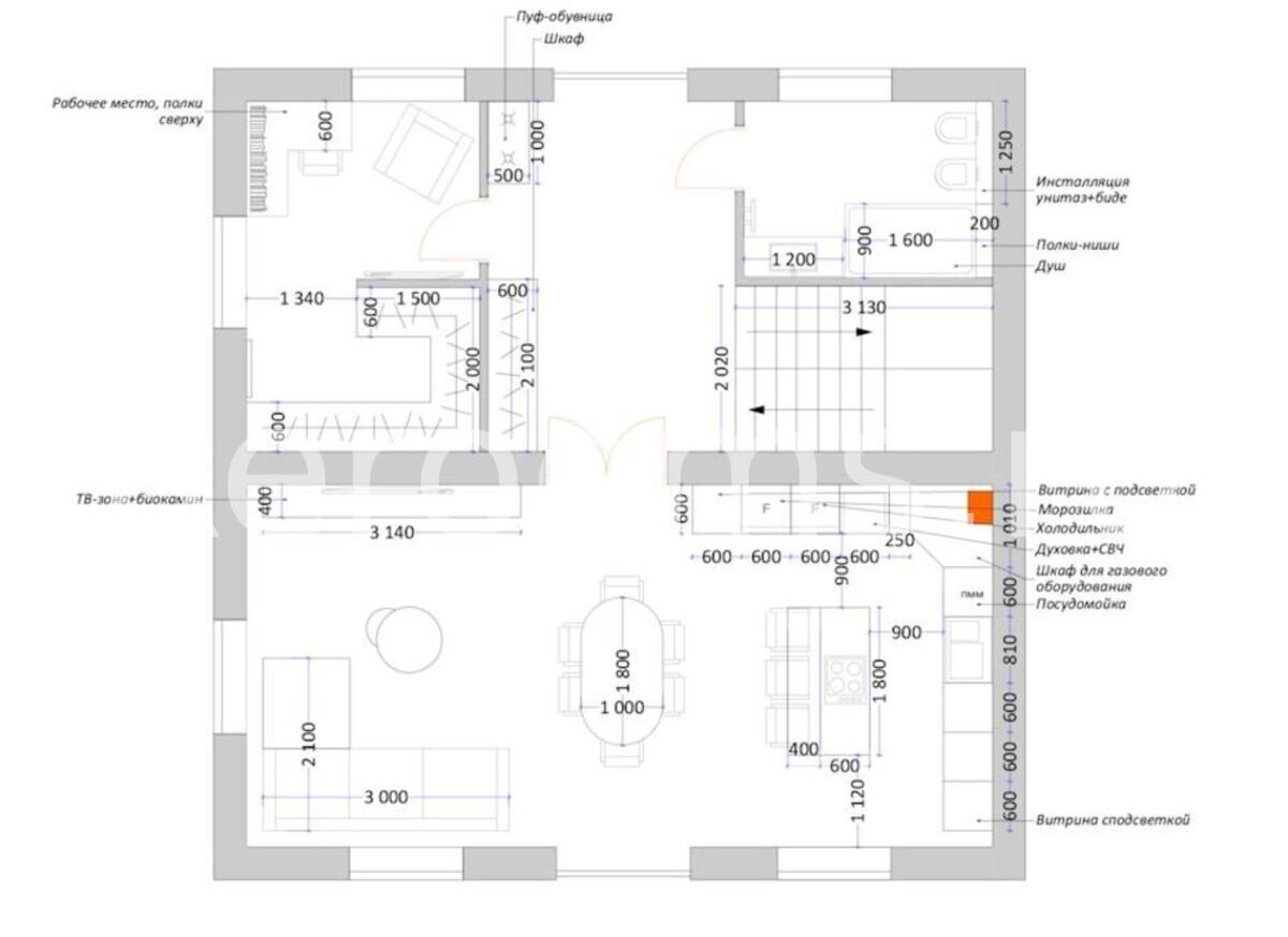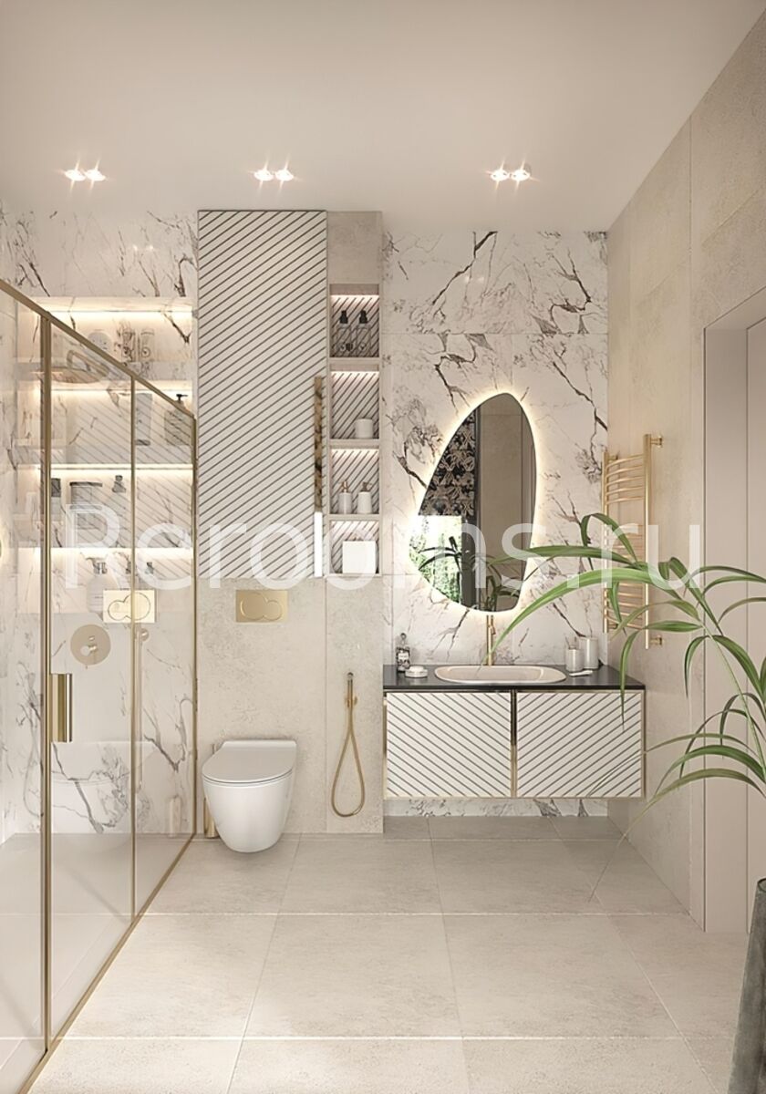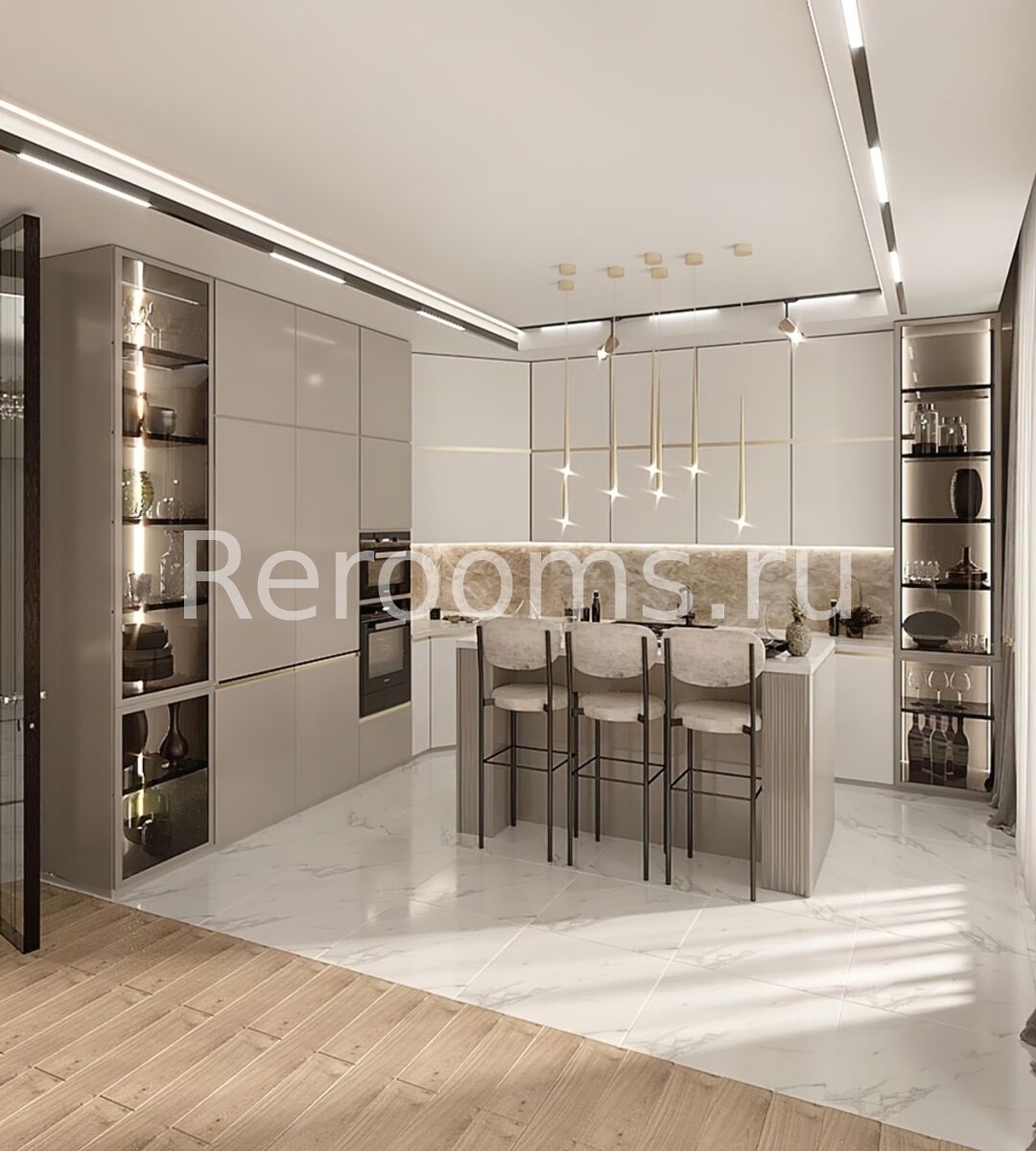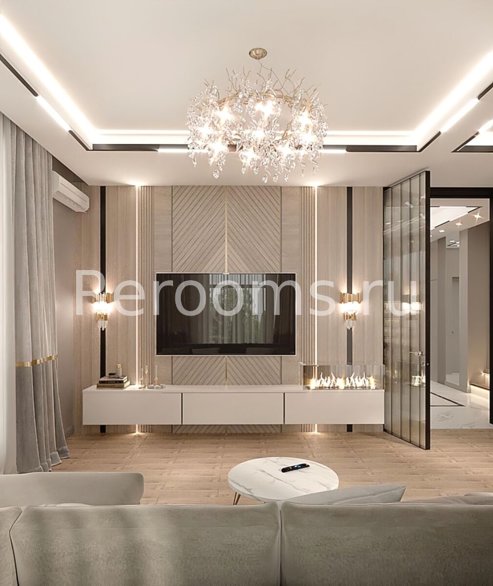 Дизайн-проект частного дома выполнен в стиле модернизм. Красивая архитектура пространства, изящный декор, гармоничное сочетание различных текстур в этом интерьере смотрятся необычайно изысканно и целостно. Разноплановое освещение придает пространству индивидуальный характер, а цветовая гамма в сложных бежево-коричневых тонах делает его стильным и респектабельным.