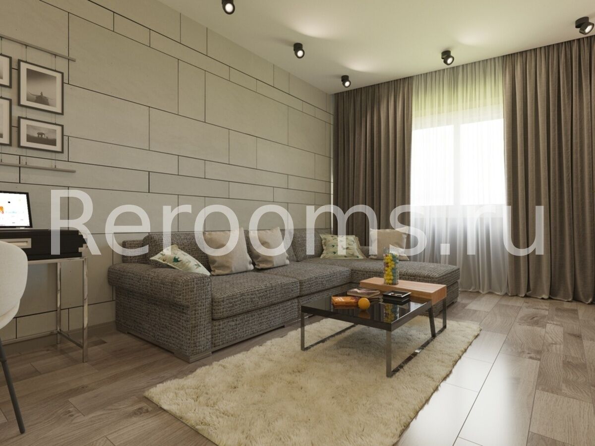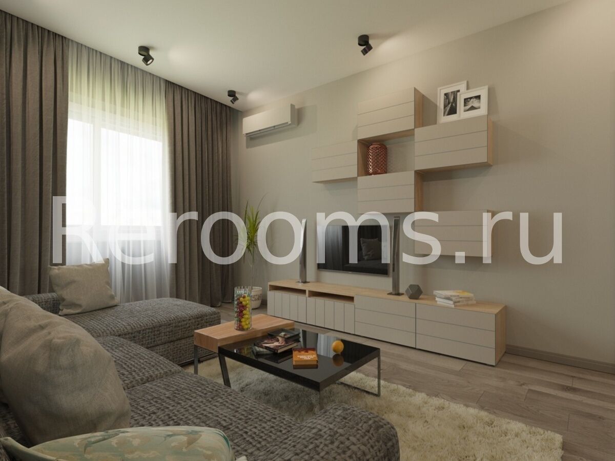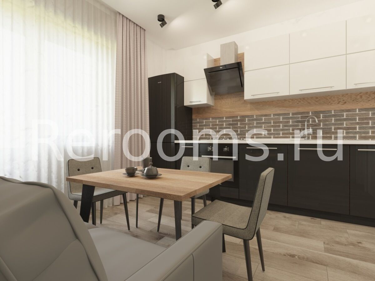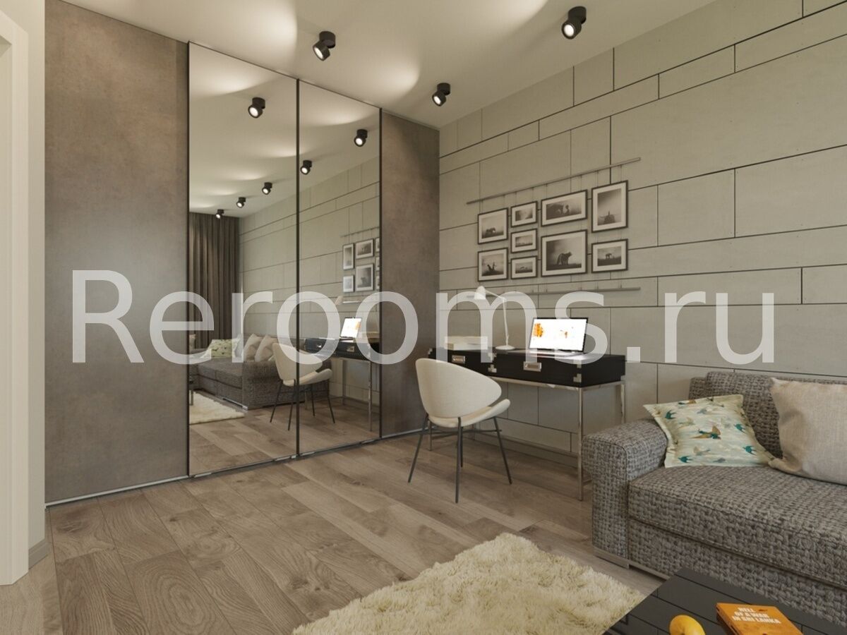 На небольшой площади удалось разместить все необходимые зоны - кухню, гостиную и даже маленький кабинет. В гостиной есть все для полноценного отдыха - удобный диван, журнальный столик, оригинальные системы хранения и достаточно вместительный шкаф. Кухня удобна и эргономична. На ней разместили минималистичный гарнитур и обеденную зону с диваном.