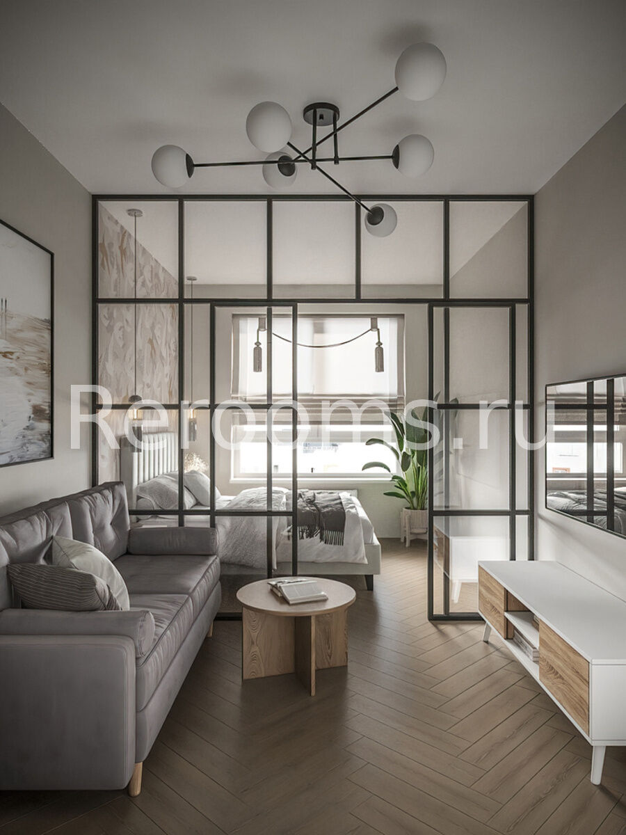 Дизайн-проект двухкомнатной квартиры выполнен в стиле модернизм. Интересная геометрия пространства, разнообразие текстур, современные элементы декора - в интерьере все это выглядит необычайно гармонично и целостно. Разноплановое освещение придает пространству индивидуальный характер, а контрастная цветовая гамма делает его стильным и уникальным.