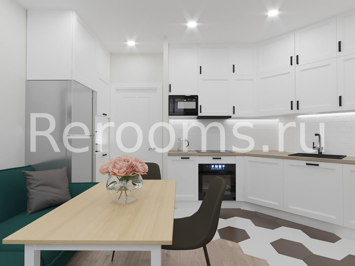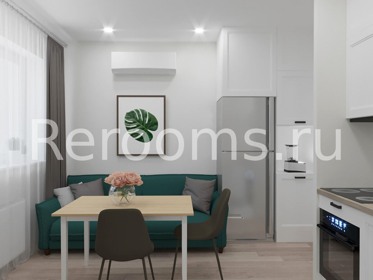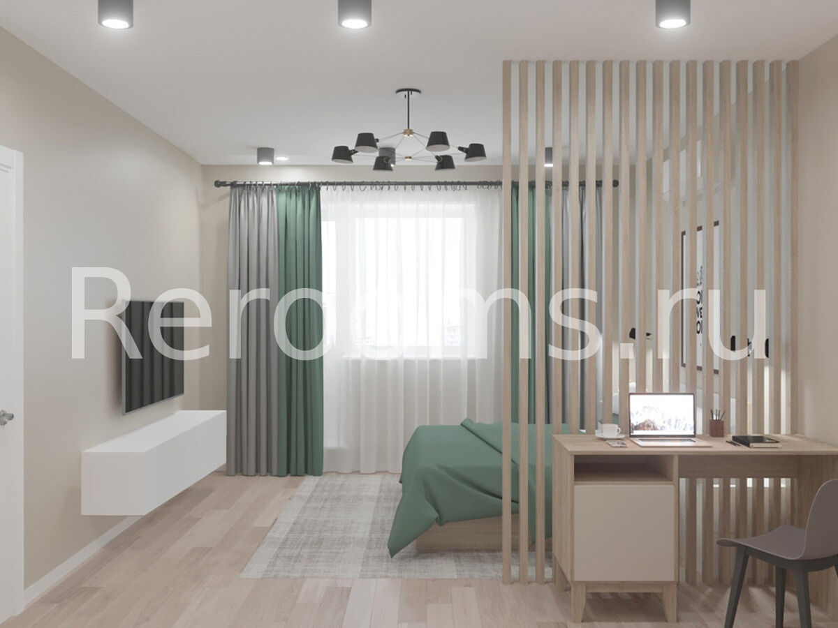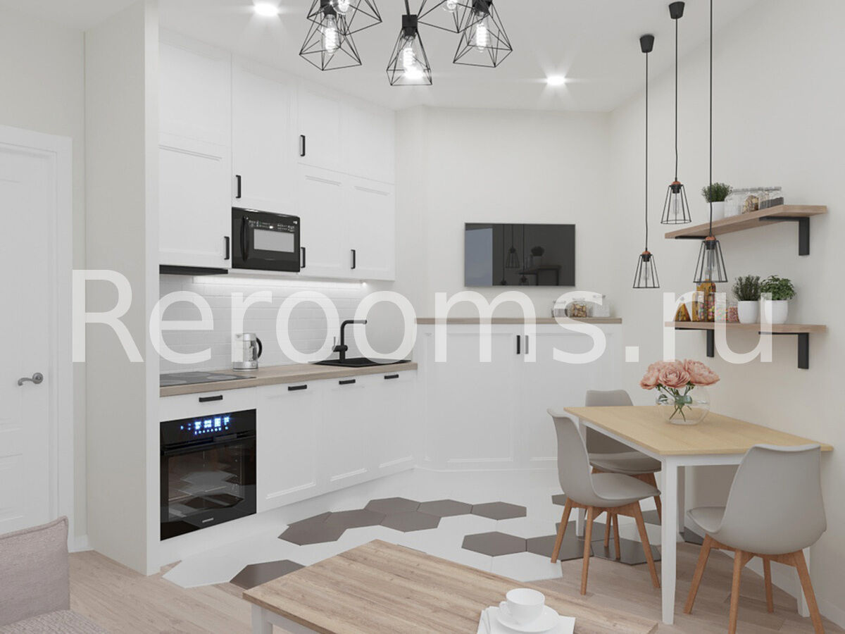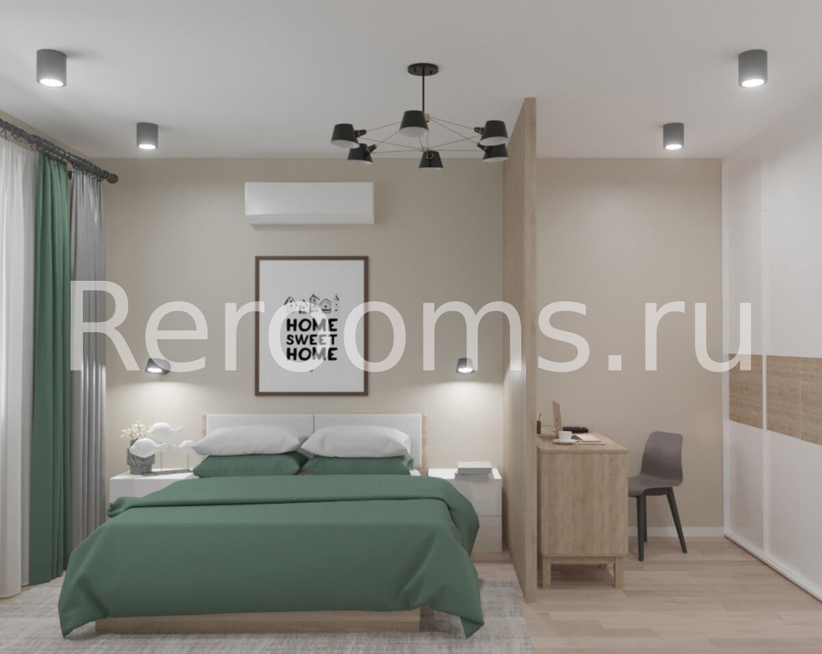 Дизайн-проект этой двухкомнатной квартиры выполнен в скандинавском стиле. Интерьер отличается лаконичностью и изысканным внешним видом. В качестве основных цветов выбраны характерные для скандинавского дизайна белый и бежевый цвета. Зонирование в комнате проведено при помощи реечной перегородки.Она отделила зону спальни от небольшого кабинета. Наличие натуральных материалов в отделке и оформлении интерьера создает в нем особую атмосферу тепла и уюта. Стильные аксессуары являются эффектным украшением пространства.