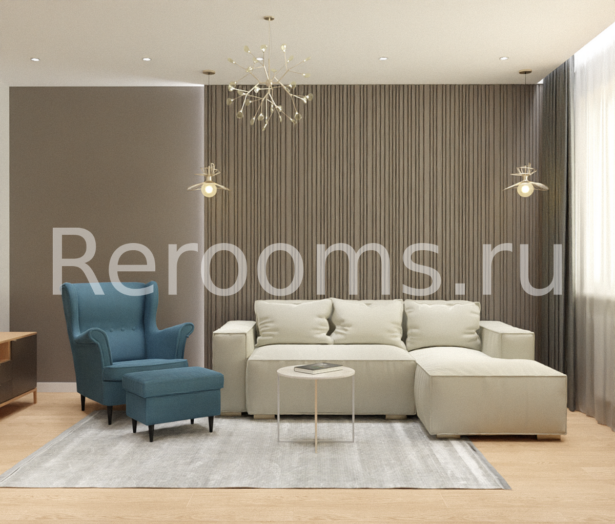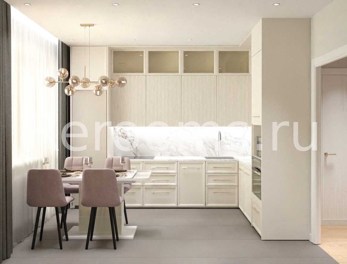 Дизайн этой трехкомнатной квартиры выдержан в современном стиле. Цветовая гамма в различных оттенках бежевого делает помещение ультрамодным и красивым. Интересная архитектура пространства, комбинация различных материалов и оригинальный световой сценарий - все это работает на общую концепцию интерьера.
