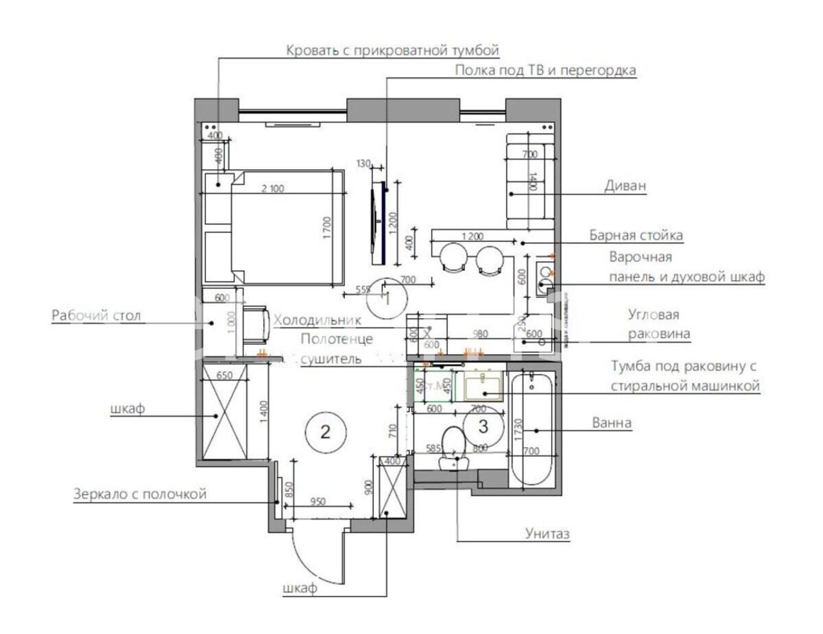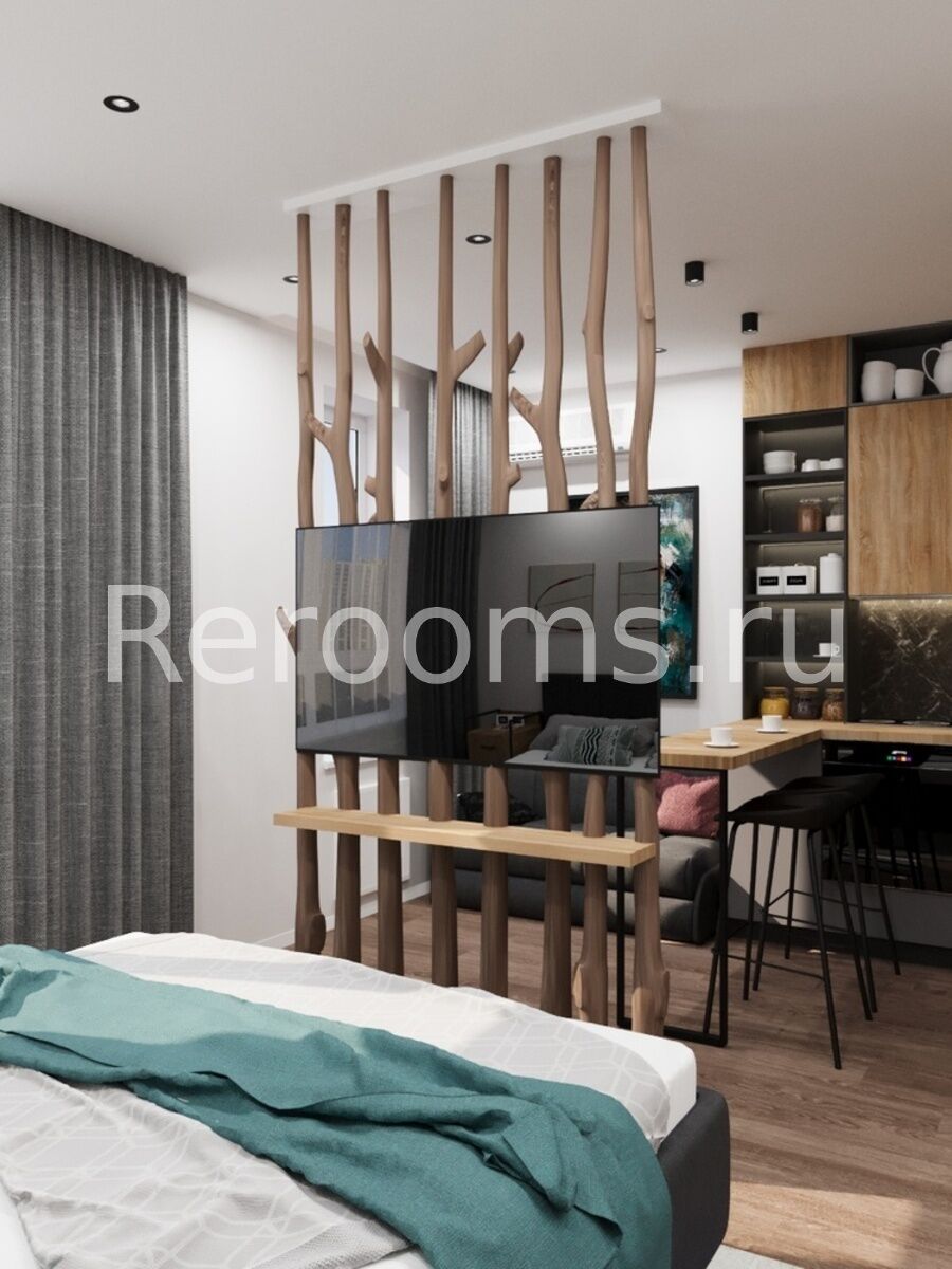 Дизайн-проект небольшой однокомнатной квартиры выполнен в современном стиле. Интересная архитектура пространства, обилие разнообразных текстур, современные элементы декора в интерьере смотрятся необычайно гармонично и целостно. Разноплановое освещение придает помещению индивидуальный характер, а гармоничное сочетание цветов делает пространство стильным и уникальным.
