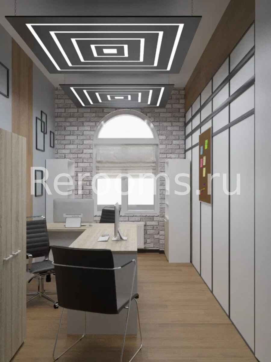 Дизайн-проект этого небольшого офиса выполнен в современном стиле. В цветовом отношении интерьер выдержан в серо-бежевых тонах, дополненных насыщенным коричневым цветом. Пространство поделено на несколько функциональных зон - рабочие места, зона для переговоров и уголок для отдыха. Визуальное деление в данном случае произвели при помощи мебели. Большое окно, во всю ширину стены позволяет наполнить помещение светом и обеспечить комфортное пребывание в офисе для сотрудников.
