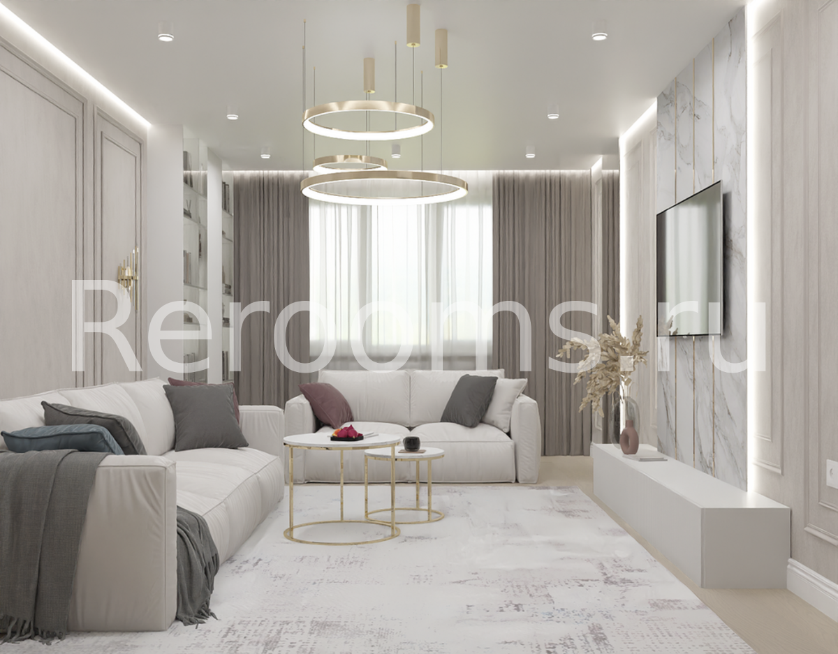 Дизайн-проект трехкомнатной квартиры 87.5 м² Стиль Модернизм для ЖК "Большое Кусково"