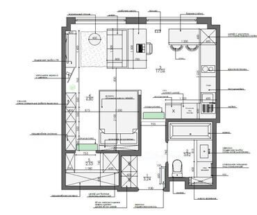 Интерьер этой двухкомнатной квартиры выполнен в стиле лофт. Брутальные текстуры, современные индустриальные светильники, а также металлические элементы декора придают помещению дух фабричного пространства. В интерьере преобладают характерные для лофтовой стилистики цвета, такие как серый и графитовый и черный. Пространство квартиры функционально и четко соответствует выбранной концепции.