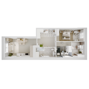 Фото № 1: Дизайн-проект трехкомнатной квартиры 66.6  м² Современный стиль для ЖК Дом учителя