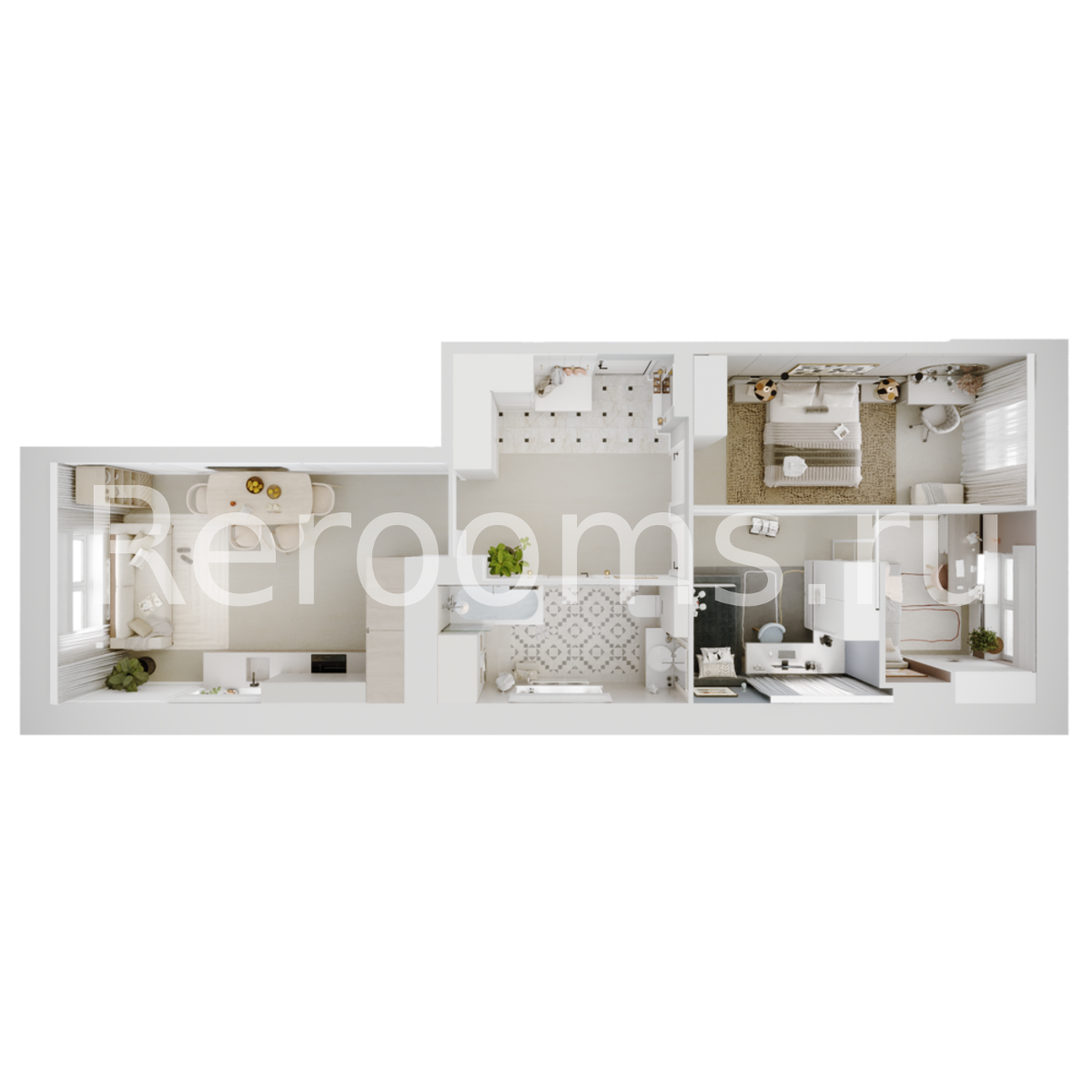 Фото № 2: Дизайн-проект трехкомнатной квартиры 66.6  м² Современный стиль для ЖК Дом учителя