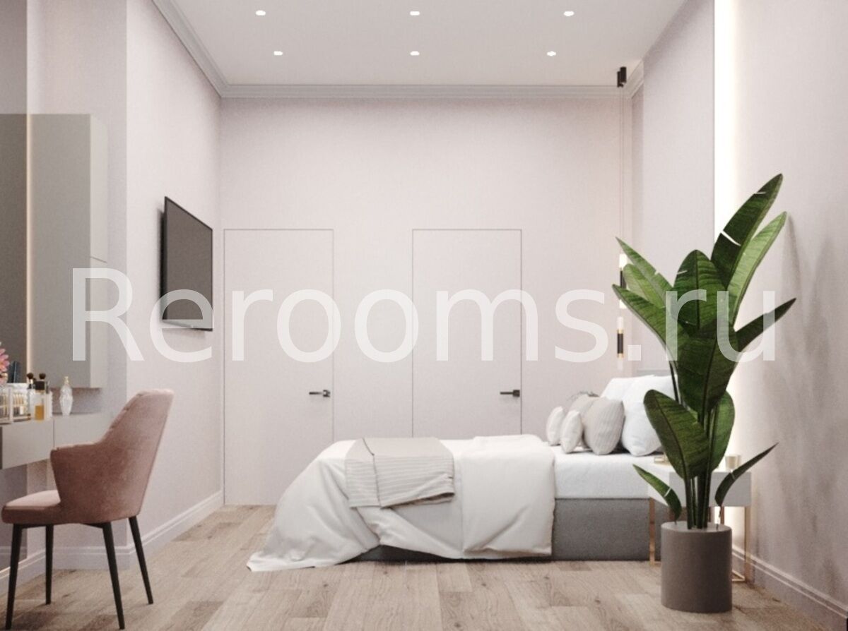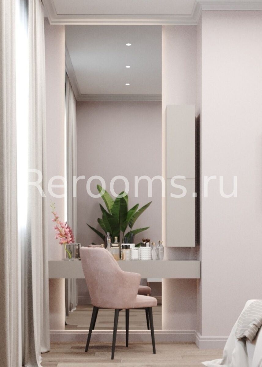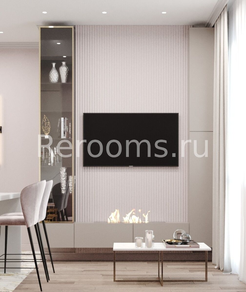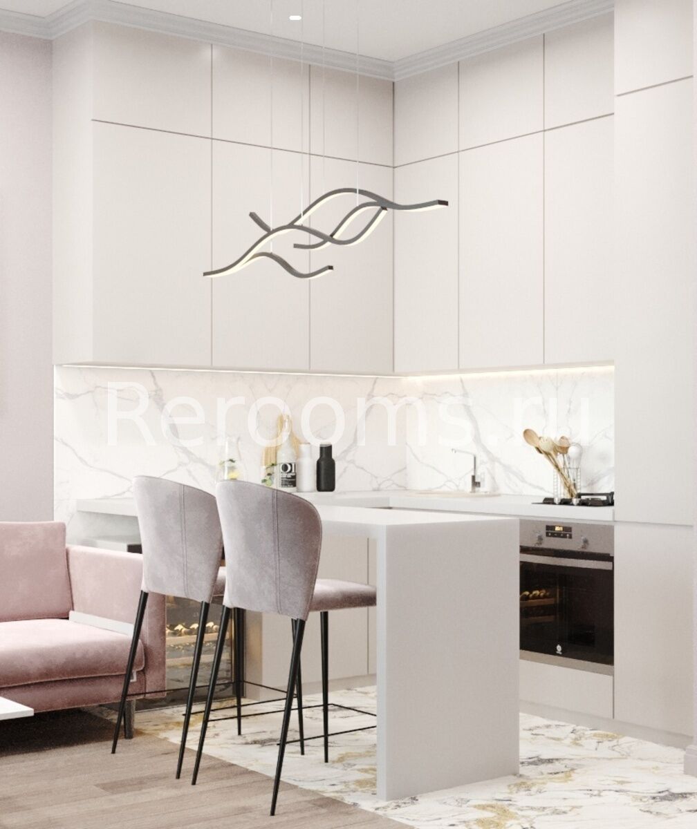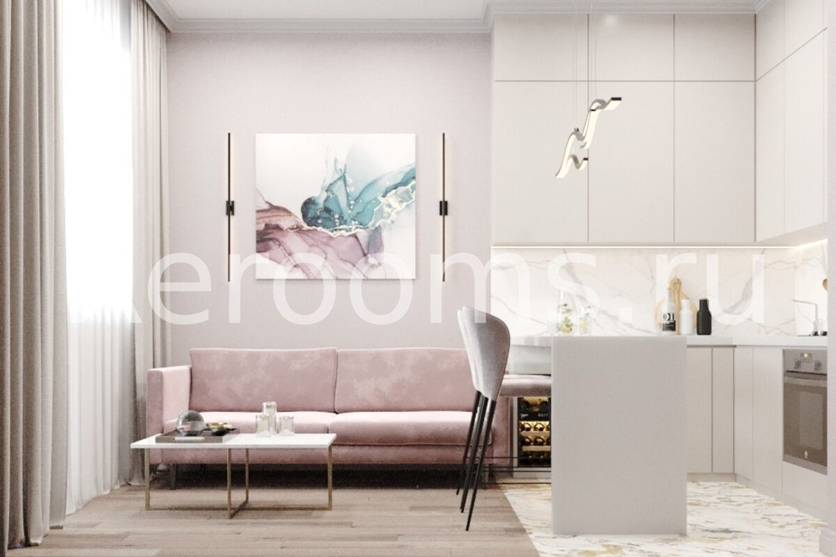 Разрабатывая проект этой двухкомнатной квартиры, дизайнер следовала основным принципам стилистики модернизма. Интерьер отличается современным видом и функционализмом. В рамках одного помещения разместили две зоны - кухни и гостиной, получив удобное пространство. В качестве основных цветов выбрали серо-жемчужный и пыльно-розовый. Спальня выглядит очень гармонично. Здесь нет ничего лишнего и каждый предмет идеально вписан в пространство.
