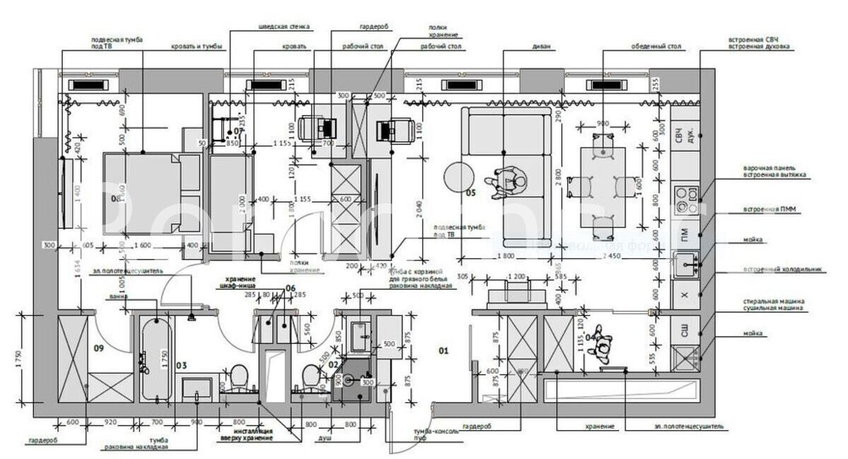 Дизайн-проект трехкомнатной квартиры выполнен в стиле модернизм. Красивая архитектура пространства, обилие разнообразных текстур, современные элементы декора - все выглядит необычайно гармонично и целостно. Разноплановое освещение придает пространству индивидуальный характер, а гармоничное сочетание цветов делает его стильным и уникальным.
