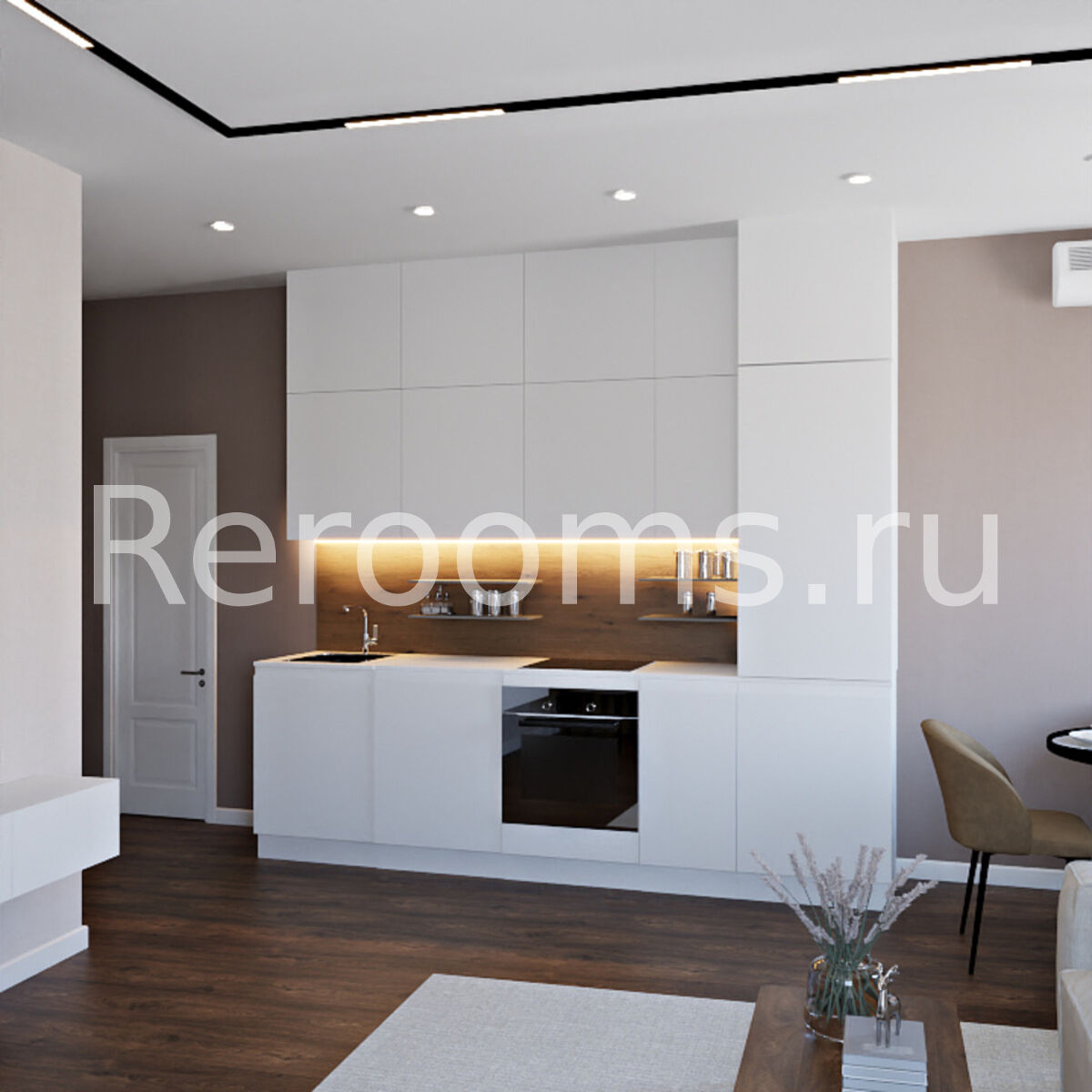 Дизайн этой квартиры выдержан в современном стиле. Цветовая гамма с использованием контрастных тонов делает интерьер ультрамодным и красивым. Комбинация различных текстур, контрастная цветовая гамма и оригинальный световой сценарий - все это работает на поддержание концепции современного дизайна.