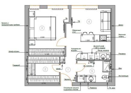 Модернизм придаёт пространству особое настроение и характер. Интерьер этой двухкомнатной квартиры, выполненный в этом стиле, впечатляет утончённостью и продуманностью каждой детали. Разные дизайнерские приёмы, выразительные цветовые контрасты и функциональная мебель создают цельный и гармоничный образ.