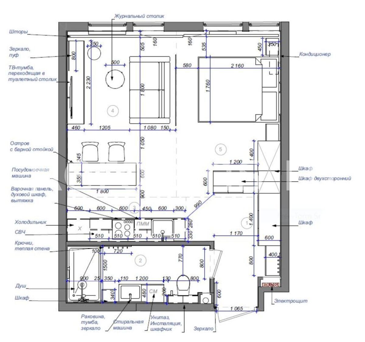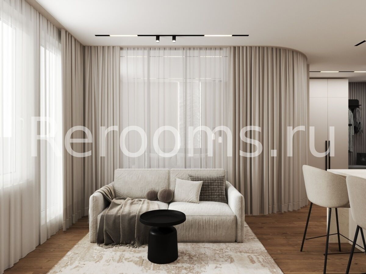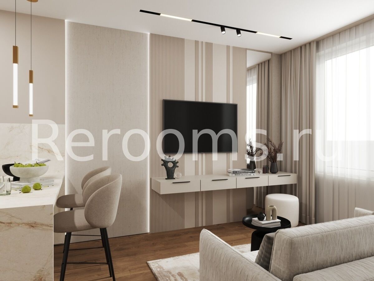 Эта двухкомнатная квартира оформлена в современном стиле модернизма. Пространство впечатляет изящной архитектурой, гармоничной цветовой палитрой и продуманной эргономикой, создавая атмосферу уюта и визуального баланса. Особое внимание уделено освещению и выбору материалов, что делает интерьер актуальным и динамичным.