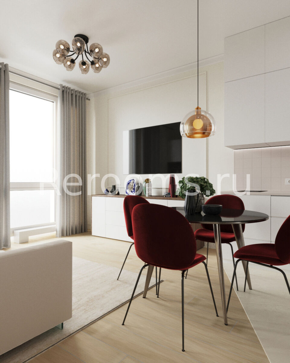 Неоклассика или современная классика в интерьере — это воплощение изысканности. Гармония и красота сочетаются с удобством и функциональностью. Это стиль, который подразумевает сохранение свободного пространства, практичность и изящество. В дизайн-проекте этой двухкомнатной квартиры четко прослеживаются черты, присущие этому стилю. Красивая эргономичная мебель, изящные элементы декора, элегантность в отделке интерьера - все это формирует ту самую неповторимую атмосферу спокойствия и умиротворения, присущую неоклассике.