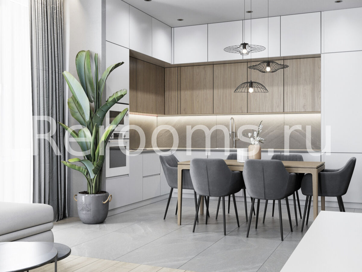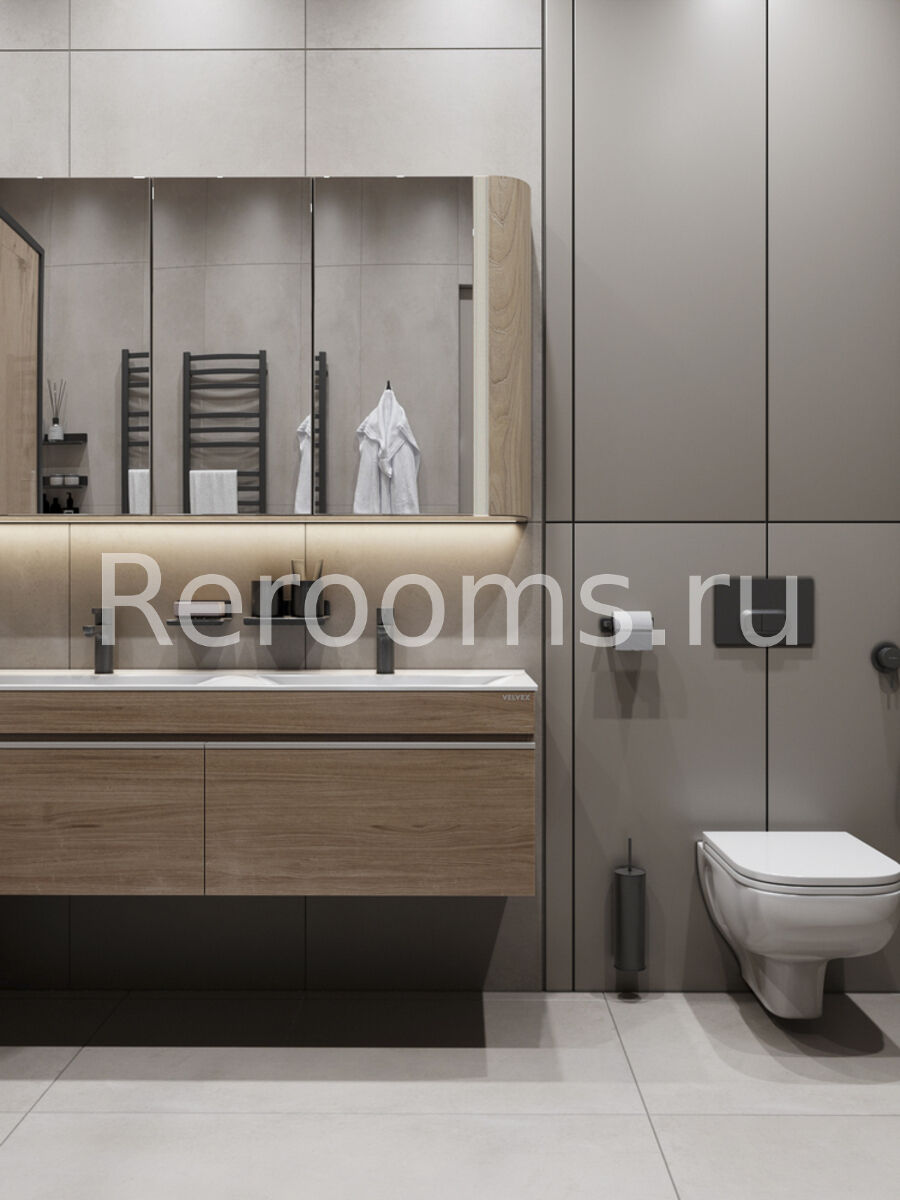 Дизайн-проект этой четырехкомнатной квартиры выполнен в стиле модернизм. Во главу угла дизайнер поставила понятия многофункциональности и комфорта. В результате интерьер получился необычайно удобным и эргономичным. Все предметы в квартире сочетаются друг с другом и в полной мере отражают специфику стиля. Спокойная цветовая гамма с преобладанием бежевого, белого и серого цветов создает в помещении атмосферу спокойствия и умиротворения.