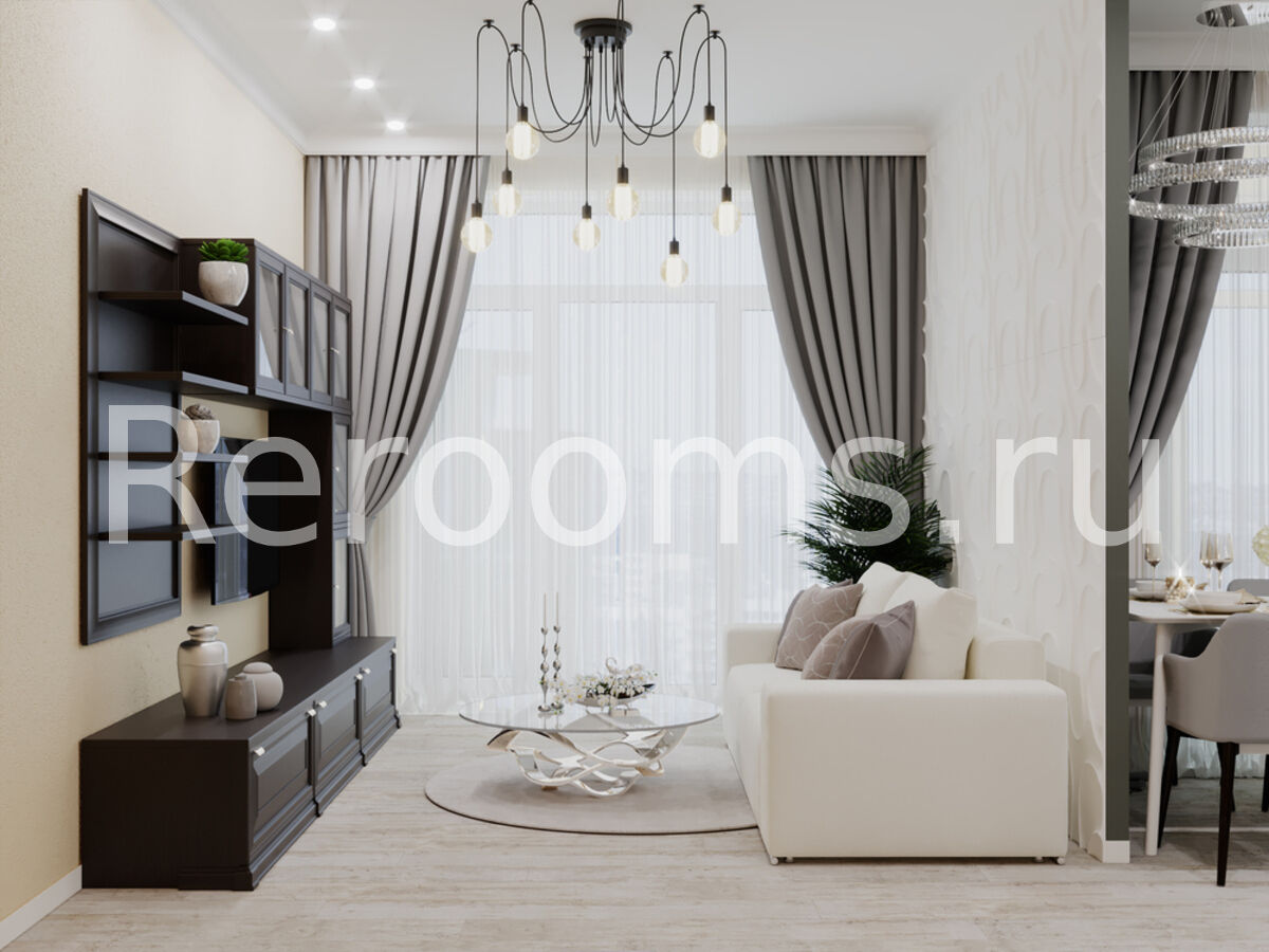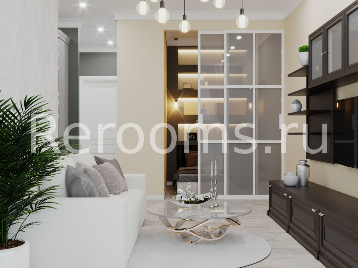 Стиль Современная классика - это сдержанная роскошь, которая сочетается с удобством и функциональностью. Ярким примером воплощения данного стиля в интерьере является эта небольшая однокомнатная квартира. Здесь все продумано до мелочей. Цвет, отделка, композиция, а также разнообразные приемы декорирования - все это создает в квартире неповторимую атмосферу комфорта, изысканности и уюта.