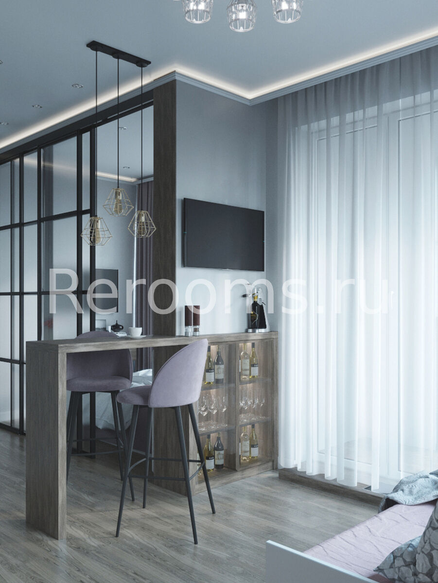 Фото № 3: Дизайн-проект однокомнатной квартиры 41.58  м² стиль Модернизм для ЖК Испанские Кварталы