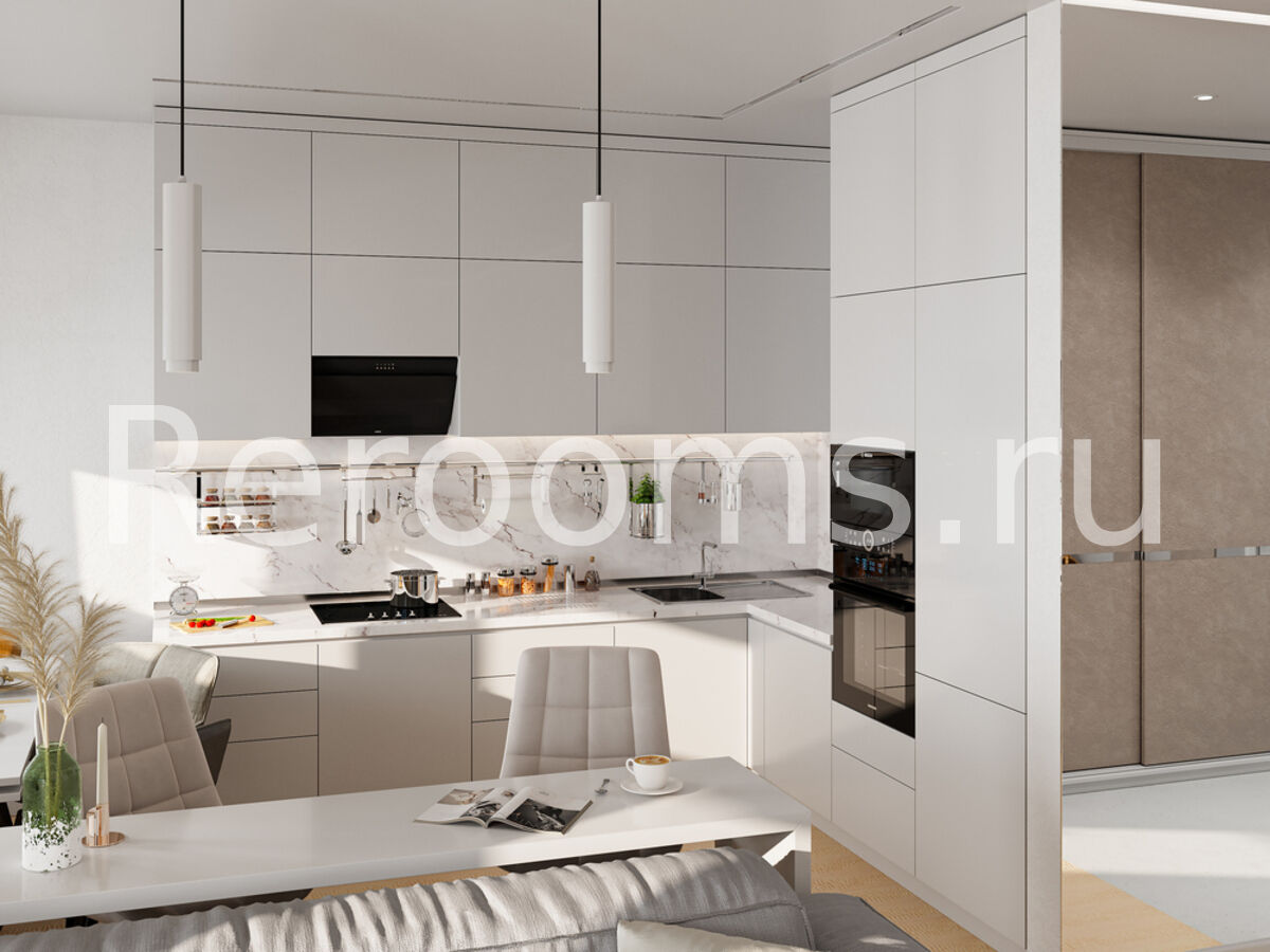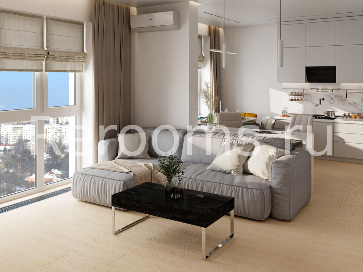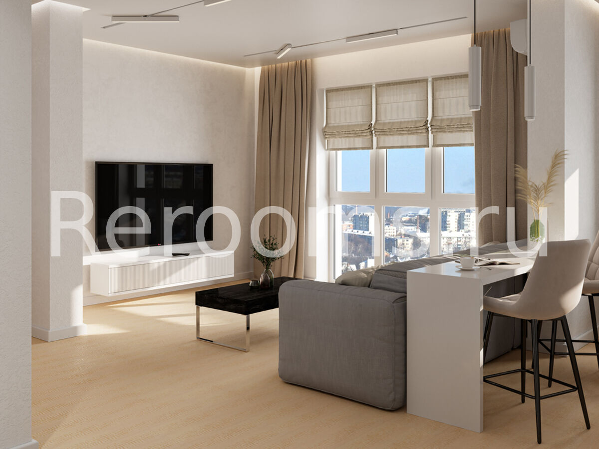 Дизайн этой квартиры выдержан в современном стиле. Цветовая гамма с использованием серых, белых и бежевых тонов делает интерьер ультрамодным и красивым. Интересная архитектура пространства, комбинация различных материалов и оригинальный световой сценарий - все это работает на поддержание концепции современного дизайна.
