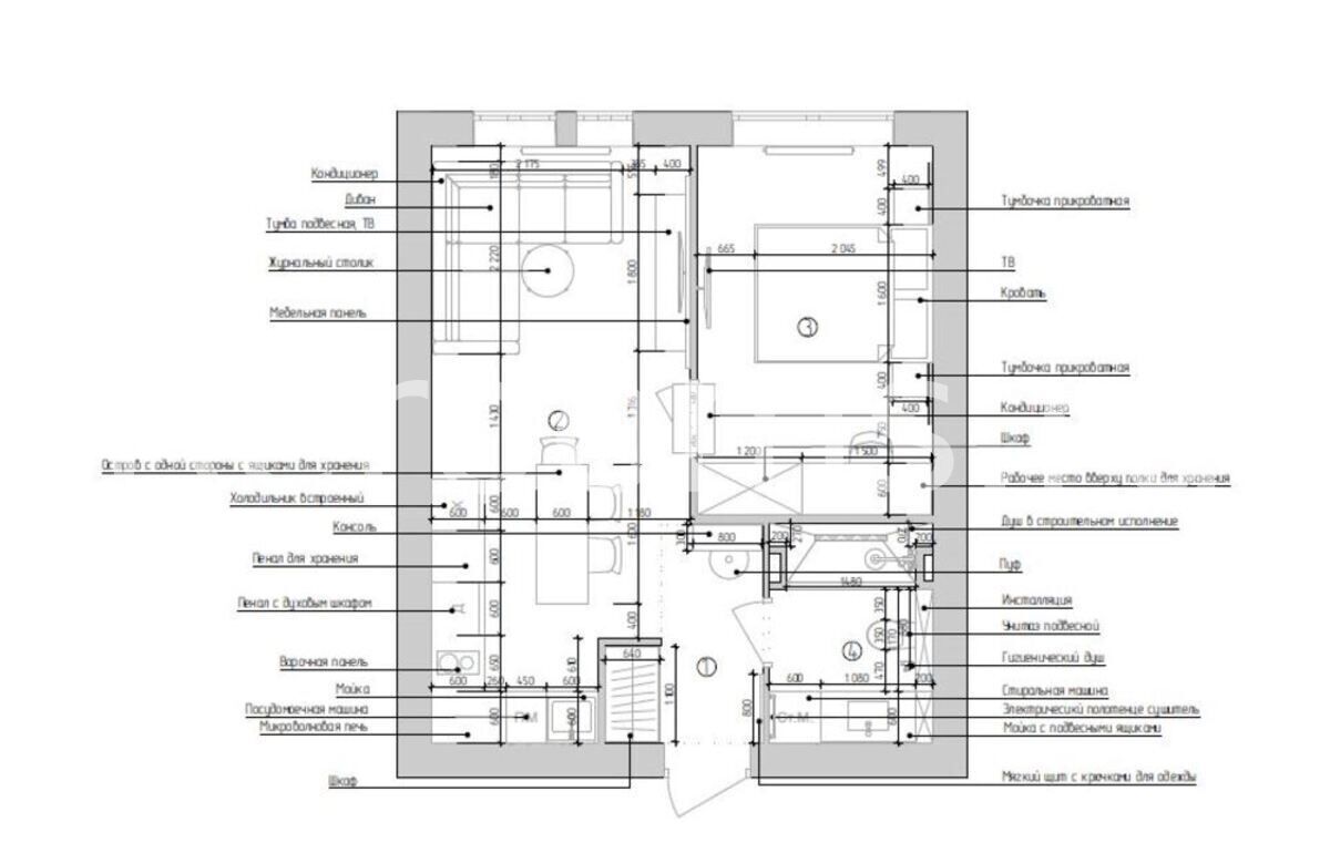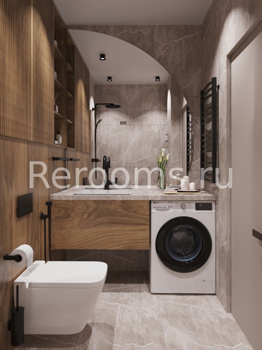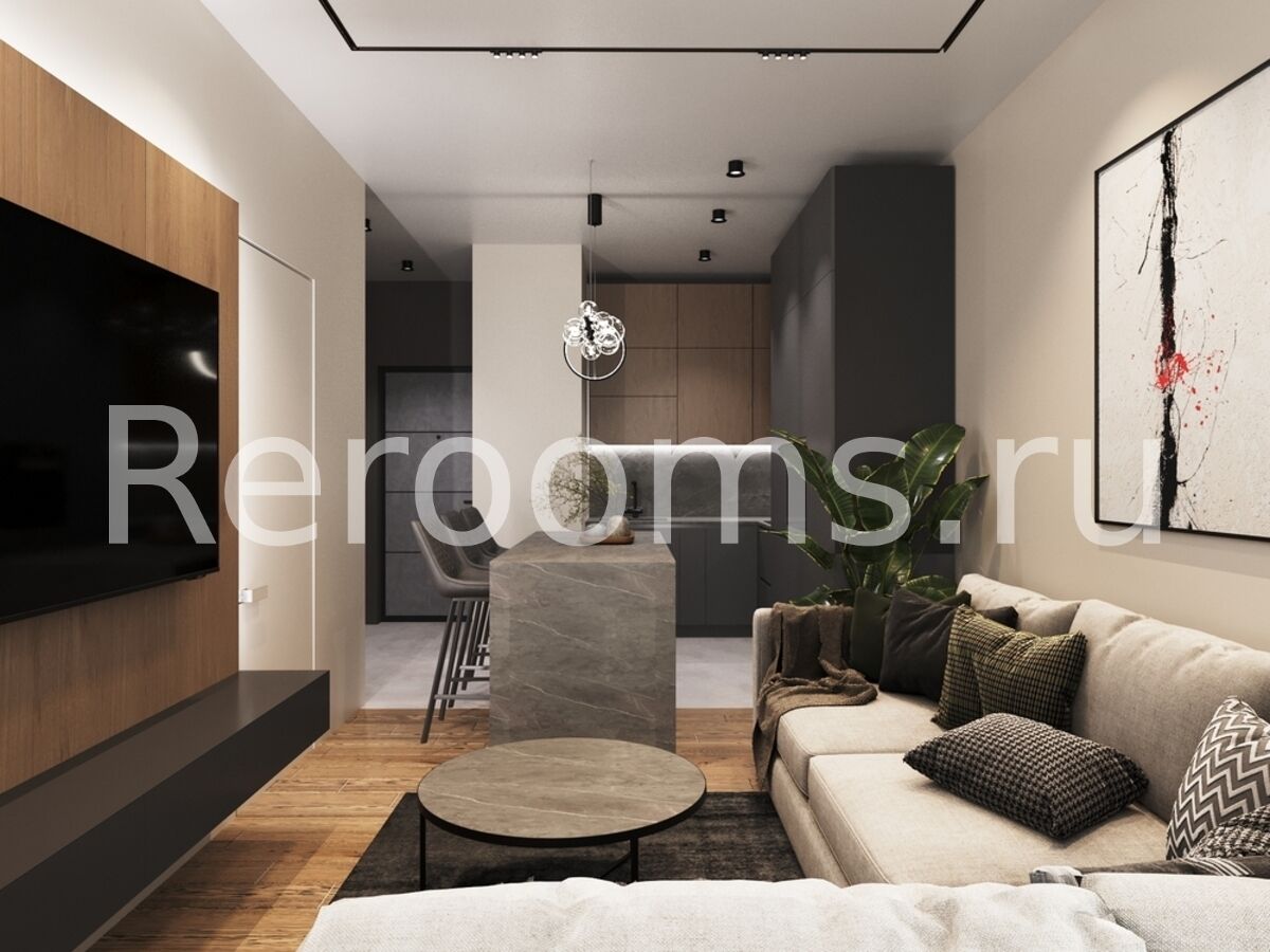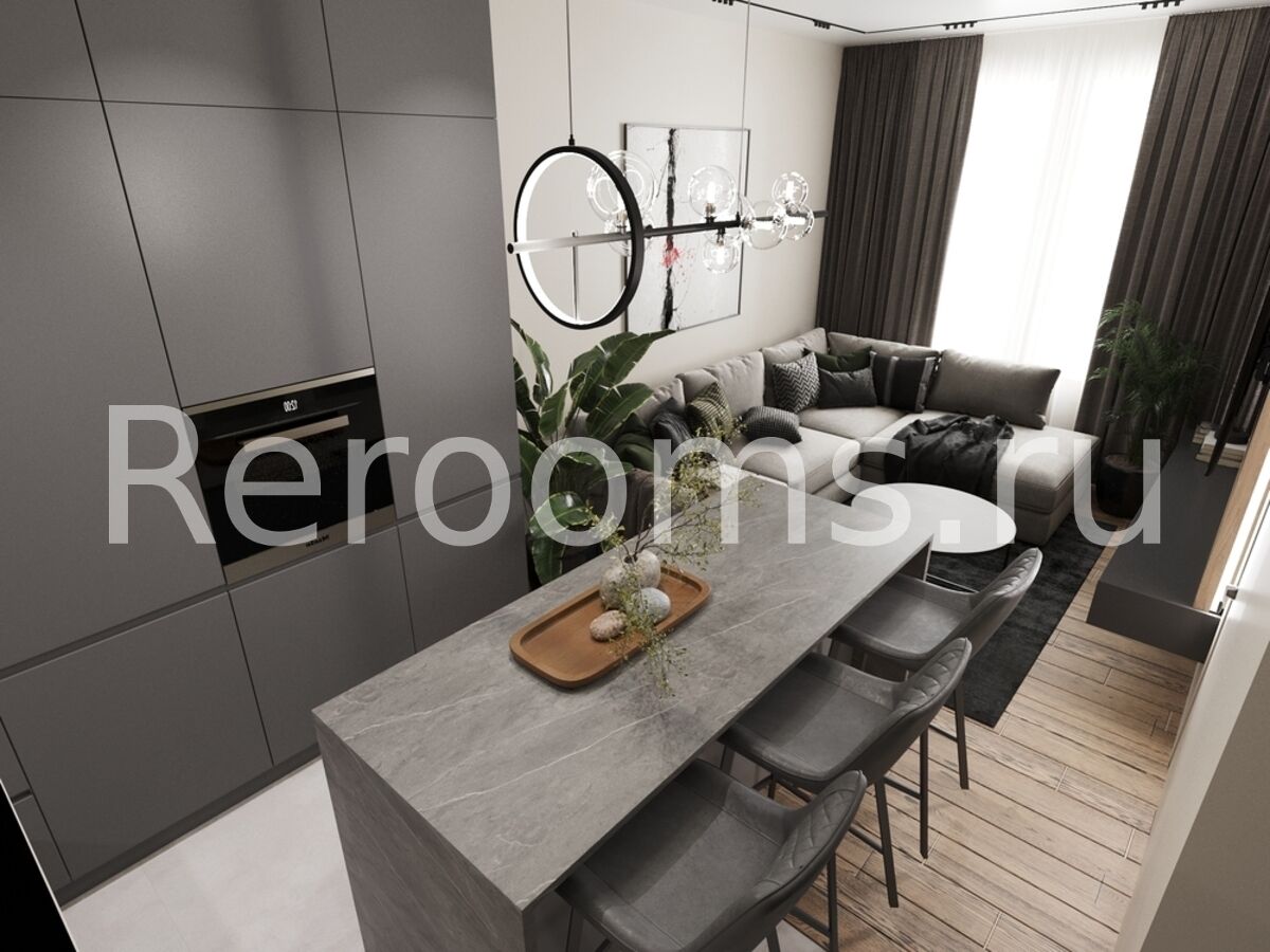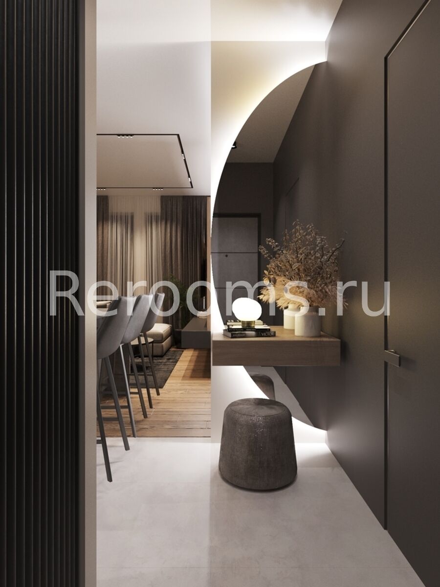 Интерьер этой двухкомнатной квартиры выполнен в стиле лофт. Брутальные текстуры, современные индустриальные светильники, а также металлические элементы декора придают помещению дух фабричного пространства. В интерьере преобладают характерные для лофтовой стилистики цвета, такие как серый и графитовый, а в дополнение к ним подобран цвет натурального дерева. Пространство квартиры функционально и четко соответствует выбранной концепции.