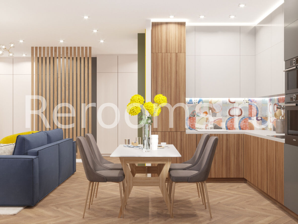 Дизайн этой квартиры выдержан в современном стиле. Светлая цветовая гамма с использованием ярких акцентов делает интерьер ультрамодным и красивым. Интересная архитектура пространства, комбинация различных материалов и оригинальный световой сценарий - все это работает на поддержание концепции современного дизайна.