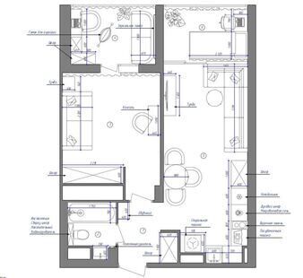 Изящность, легкость и ненавязчивая роскошь - вот основные характеристики стиля арт-деко в интерьере. Дизайн-проект этой двухкомнатной квартиры выполнен в стиле арт-деко. Для него характерны строгие геометрические формы, четкие линии, обилие дорогих текстур и декоративных элементов, нейтральная цветовая гамма, а также эксклюзивные материалы. Каждое помещение в квартире отличается изысканным видом и полностью отвечает стилистической концепции.
