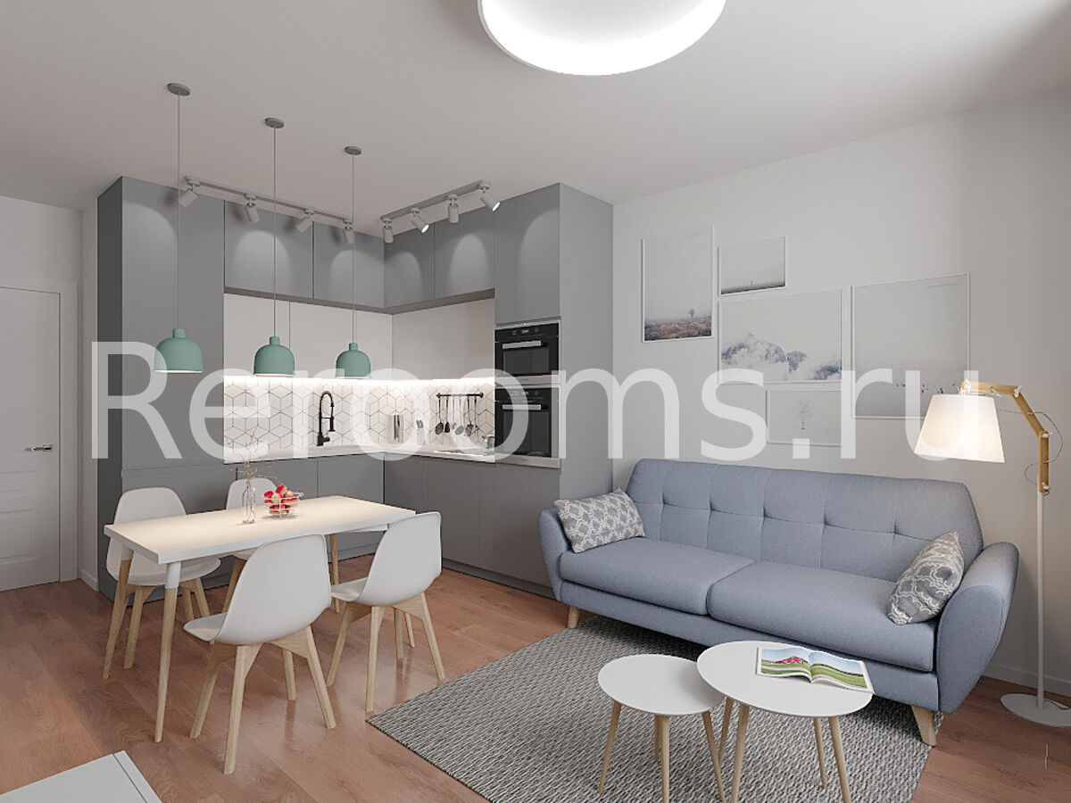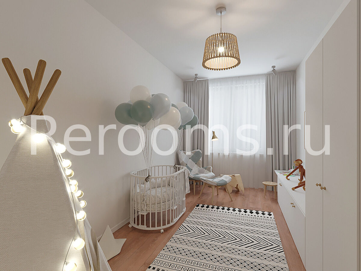Дизайн-проект этой трехкомнатной квартиры выполнен в сканди-стилистике. В качестве основных тонов отделки выбрали типичные для этого направления белый и серый цвета. В зоне гостиной установили удобный диван, организовав таким образом лаунж-зону с телевизором. Функциональный кухонный гарнитур идеально вписан в пространство и полностью соответствует выбранной стилистике. Помещение спальни удобно и функционально, здесь оборудована не только зона отдыха, но и небольшой рабочий кабинет. Дизайн детской привлекает своей лаконичностью.
