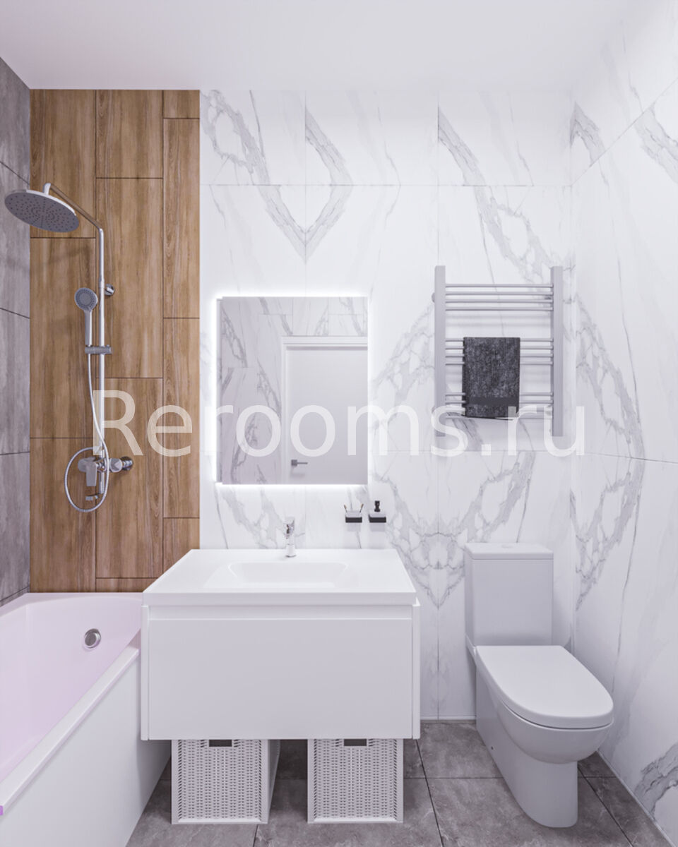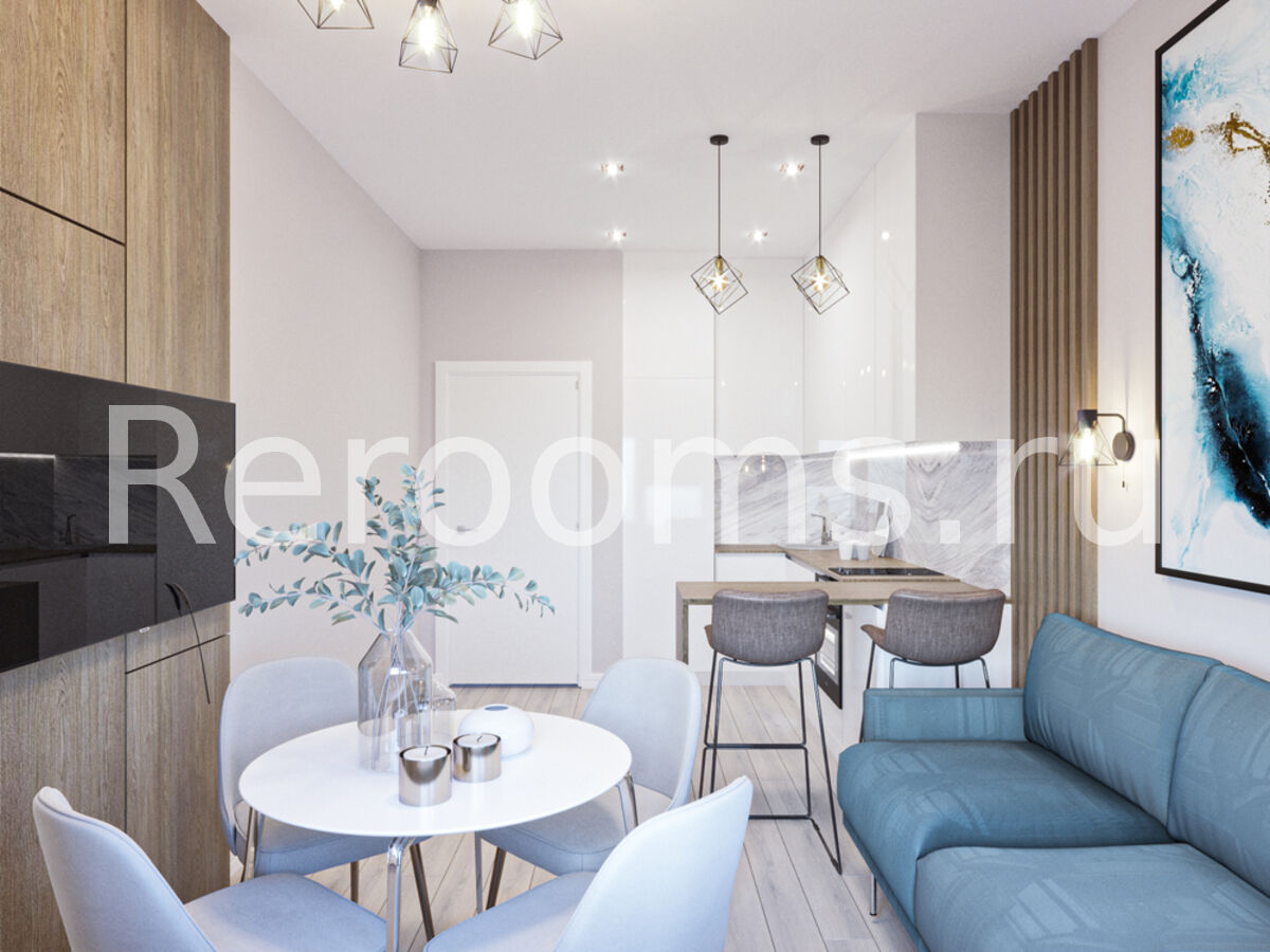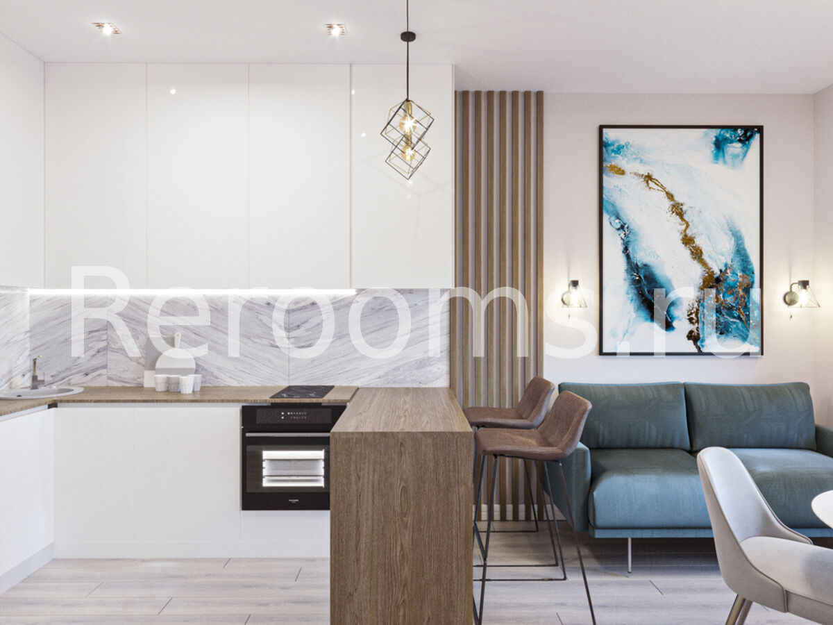 В интерьере этой двухкомнатной квартиры дизайнеры воплотили модный и современный стиль модернизм. Четкая геометрия пространства, интересные дизайнерские находки, комбинирование разнообразных материалов, современные элементы декора - все это смотрится необычайно гармонично и целостно. В качестве основных цветов дизайнер подобрала белый и серый. Они идеально сочетаются с деревянными текстурами, использованными для частичной отделки стен и мебели.