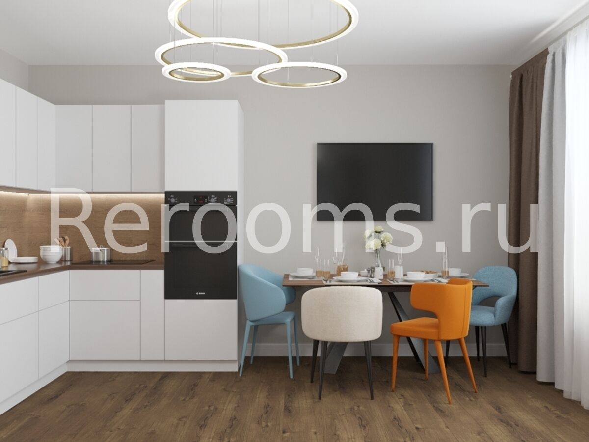 Разрабатывая проект этой трехкомнатной квартиры, дизайнер следовала основным принципам стилистики модернизма. Интерьер отличается современным видом и функционализмом. В рамках одного помещения разместили две зоны - кухни и гостиной, получив удобное и достаточно большое по площади пространство. В качестве основных цветов выбрали светло-серый с яркими акцентами. Спальня и детская выглядят очень гармонично. Здесь нет ничего лишнего и каждый предмет идеально вписан в пространство.