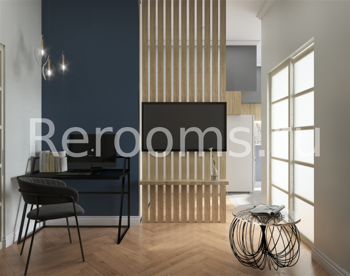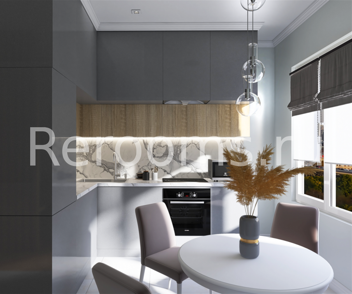 Дизайн этой двухкомнатной квартиры выдержан в современном стиле. Цветовая палитра в различных оттенках серого с использованием более глубоких акцентных тонов делает помещение ультрамодным и красивым. Интересная архитектура пространства, комбинация различных материалов и оригинальный световой сценарий - все это работает на общую концепцию интерьера.