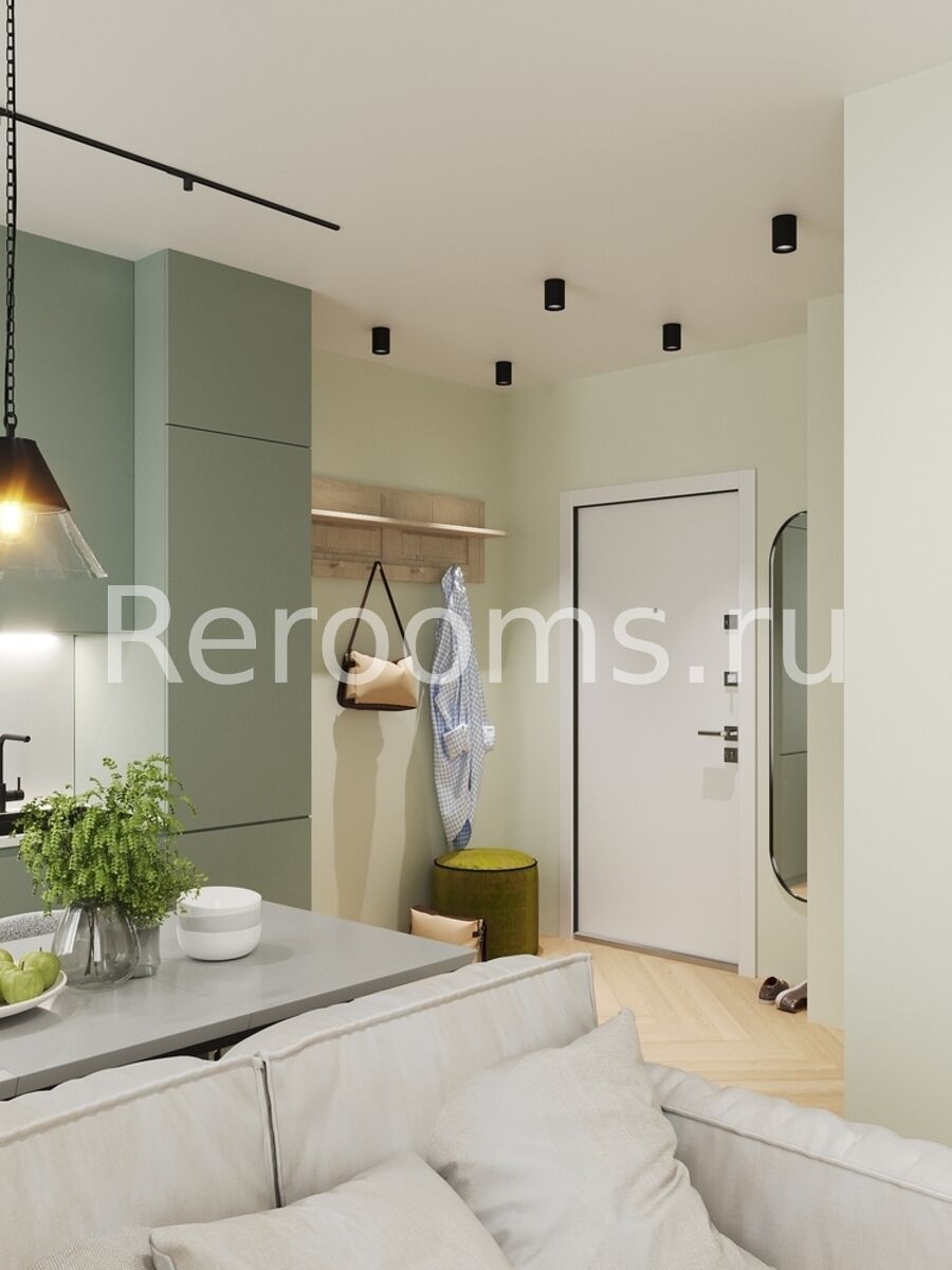 Фото № 3: Дизайн-проект двухкомнатной квартиры 44.2  м² Современный стиль для ЖК Level Нагатинская