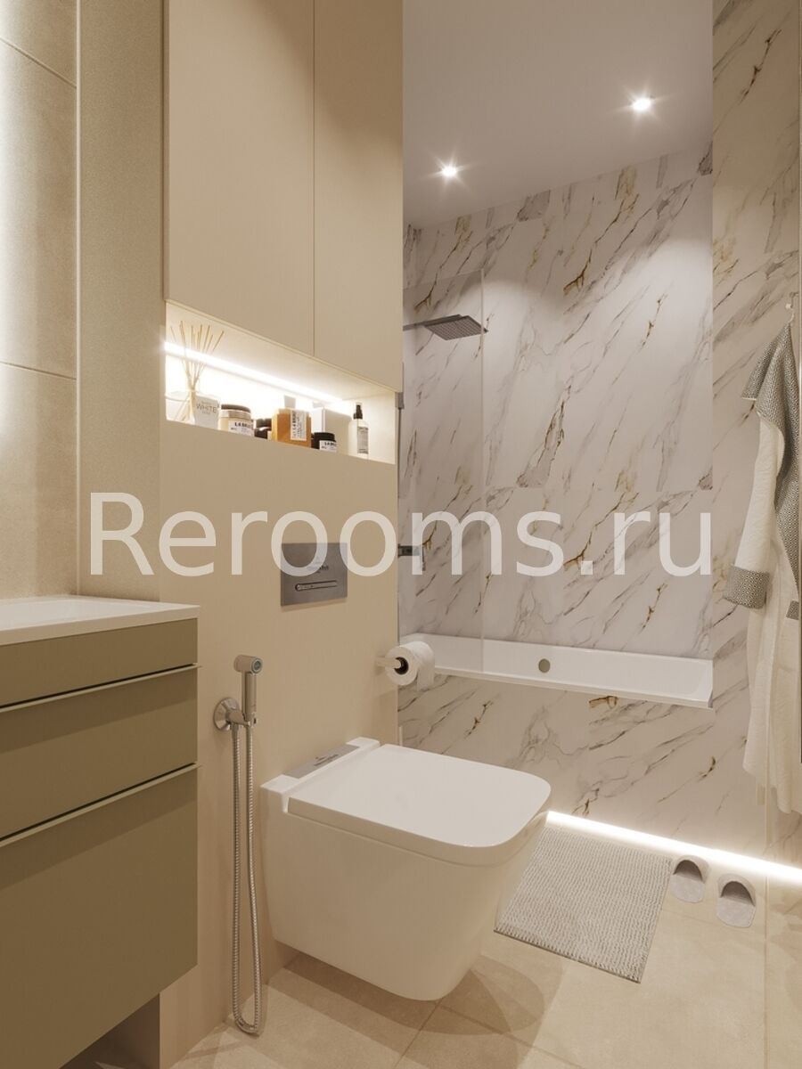 Фото № 6: Дизайн-проект двухкомнатной квартиры 44.2  м² Современный стиль для ЖК Level Нагатинская