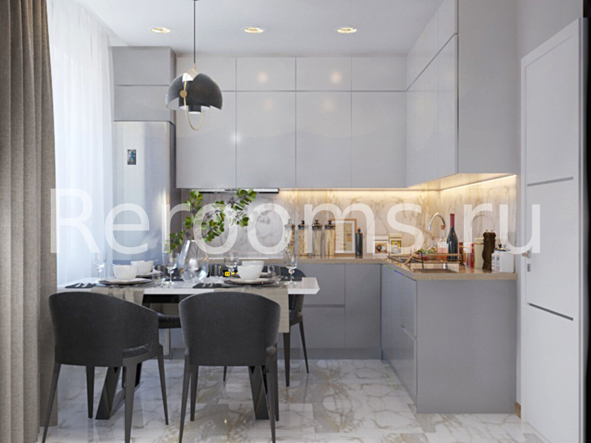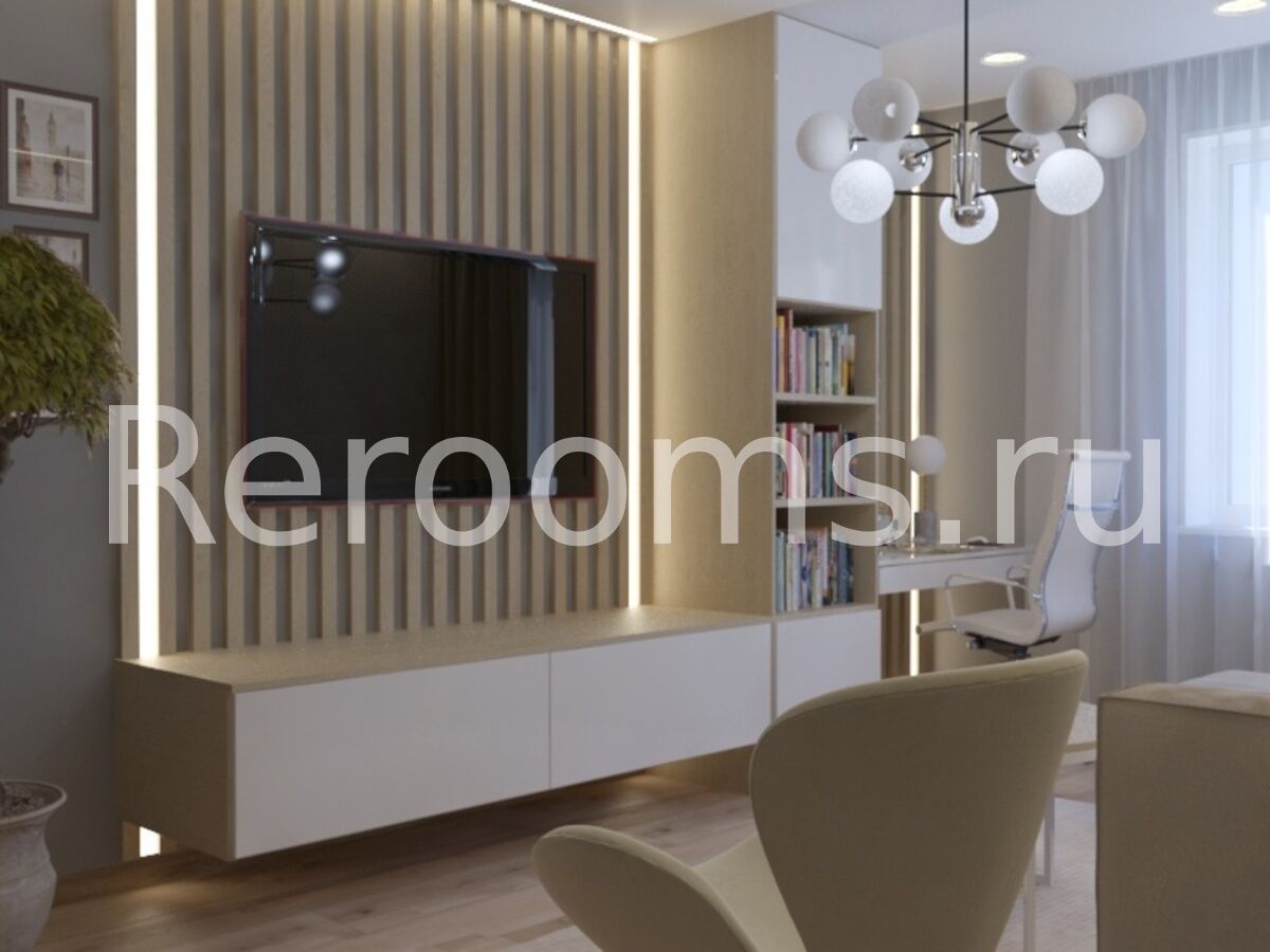 В интерьере этой трехкомнатной квартиры дизайнер воплотила модный стиль модернизм. Четкая геометрия пространства, интересные архитектурные формы, обилие разнообразных текстур, современная подсветка и элементы декора придают интерьеру гармоничный и целостный вид. Использование фактур под дерево (реечный декор и отделка стен) наполняет пространство теплом и делает его особо уютным. В цветовом отношении дизайнер отдала предпочтение сдержанным оттенкам с контрастными акцентами.