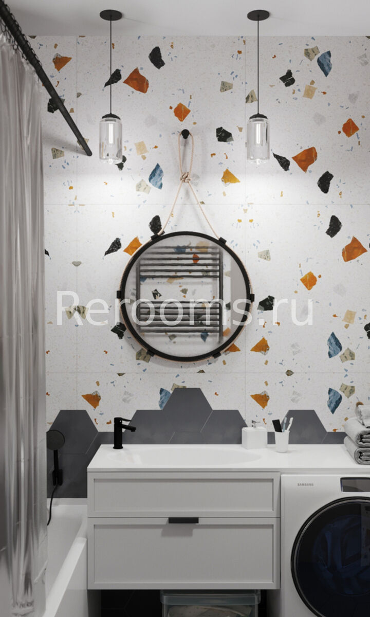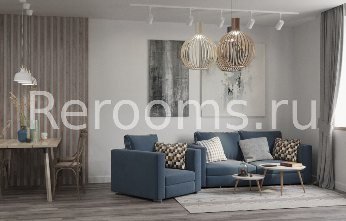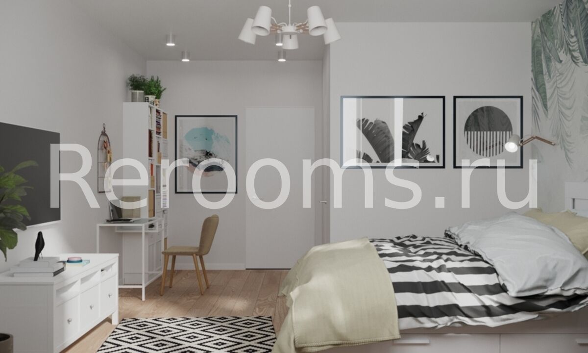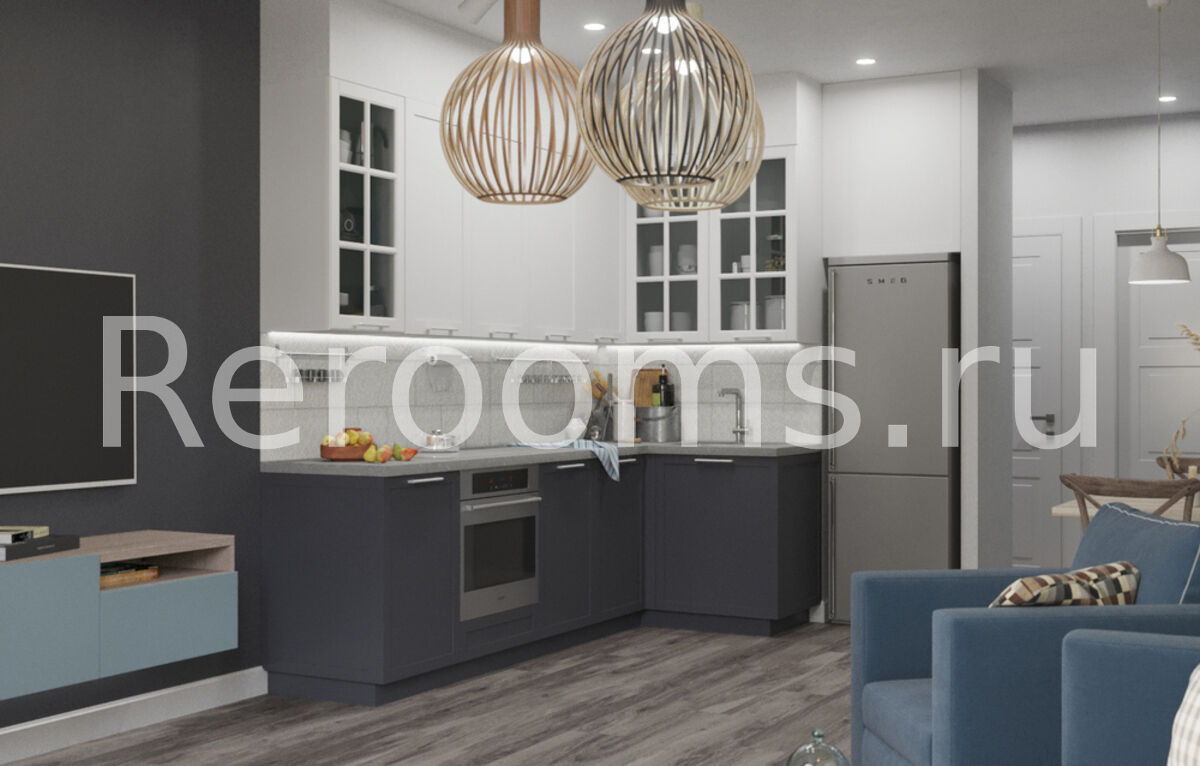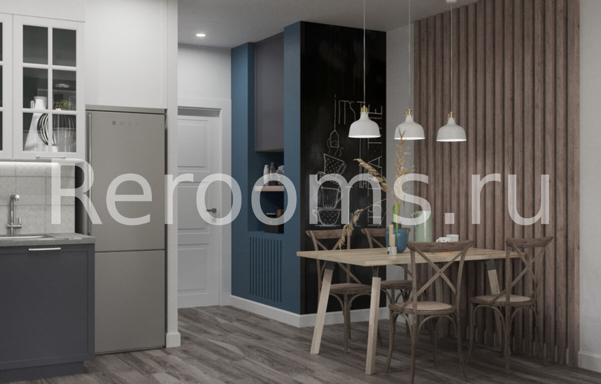 Эклектика, пожалуй, самый сложный, но в то же время самый интересный стиль в оформлении интерьера. В идеально-эклектичном пространстве черты разных стилей, гармонично дополняют и подчеркивают друг друга. В интерьере этой однокомнатной квартиры все гармонично и идеально соответствует выбранной концепции. Грамотное зонирование делает квартиру необычайно функциональной и красивой. Базовый светло-серый цвет визуально увеличивает пространство. В качестве акцентного элемента в комнате выступает часть стены, отделанная обоями с растительным принтом. В кухне такой элемент - грифельная доска.