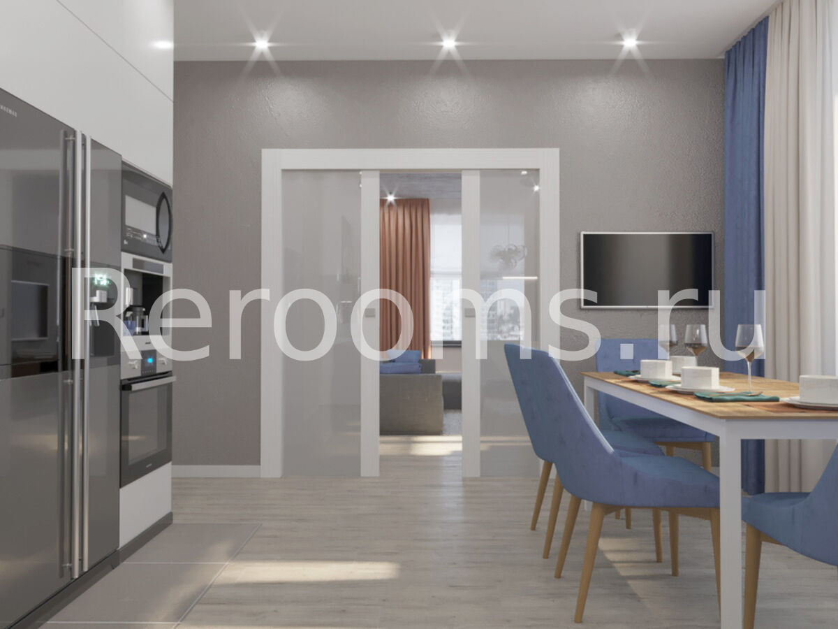 Разрабатывая этот проект, дизайнер следовала основным принципам стиля модернизм, благодаря чему интерьер квартиры получился необычайно стильным и функциональным. Дизайн выполнен в красивой цветовой гамме. Здесь преобладают различные оттенки серого цвета, разбавленные яркими акцентами. Сочетание разнообразных фактур, архитектурных решений, а также удачные декораторские приемы делают интерьер необычным и интересным. Особое внимание в квартире уделено освещению. В каждом помещении своя стильная модель светильника, дополненная встроенным светом.