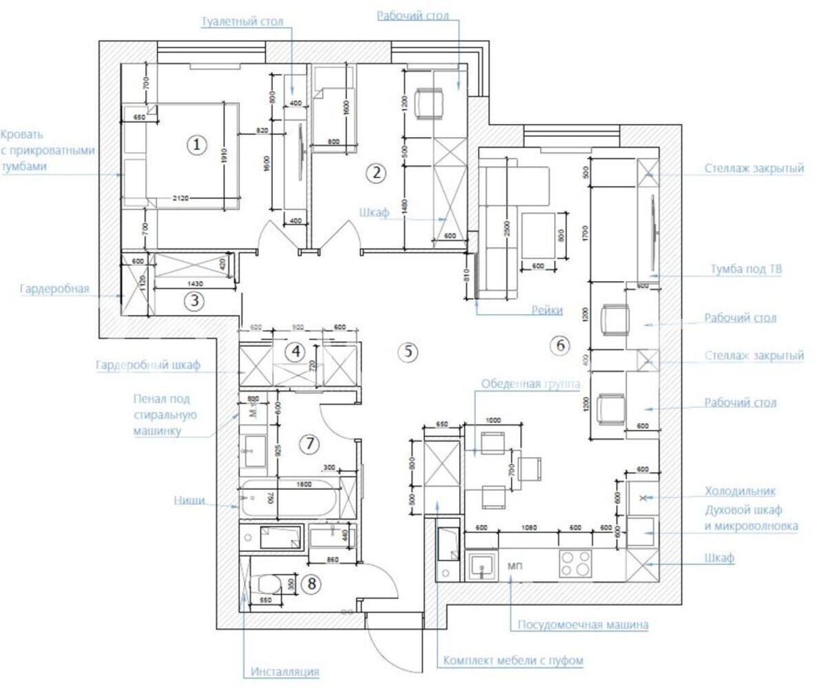 За основу оформления этой трехкомнатной квартиры взят современный стиль. Сдержанные цвета, использование разнообразных текстур, высококачественные отделочные материалы, интересный световой сценарий - все это помогло создать комфортный и эстетически привлекательный интерьер.