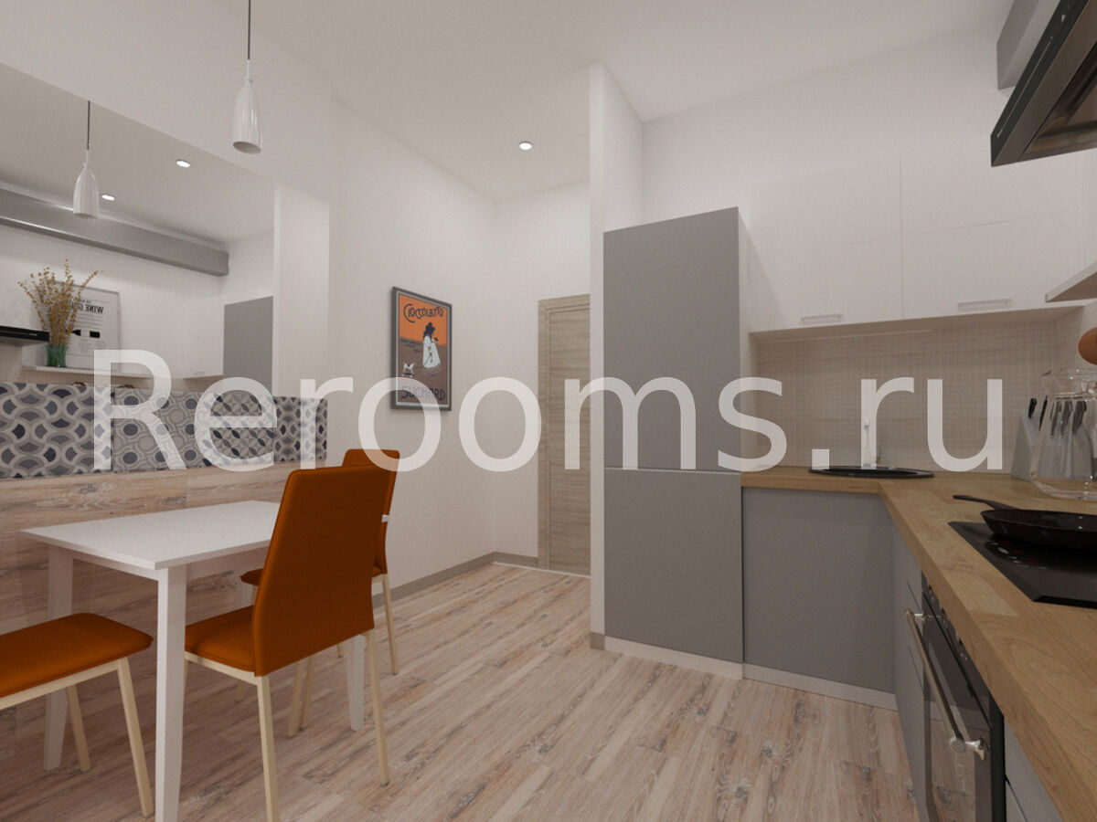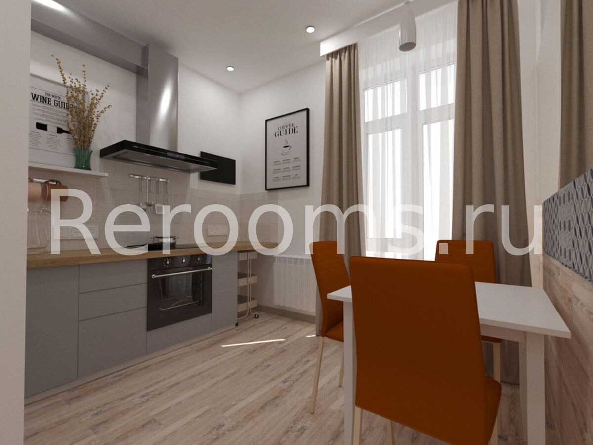 Для кухни дизайнеры подобрали лаконичную и функциональную мебель, которая идеально соответствует основной стилистике квартиры.