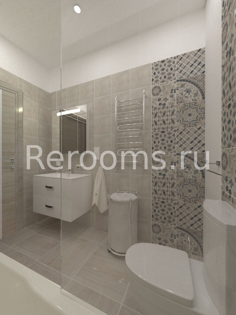 Интерьер данной квартиры выполнен в светлых тонах, здесь присутствуют бежевый, белый и лиловый цвета. Для пола дизайнеры выбрали ламинат под дерево. Он отлично перекликается с текстурой дверей, создавая гармоничный ансамбль.