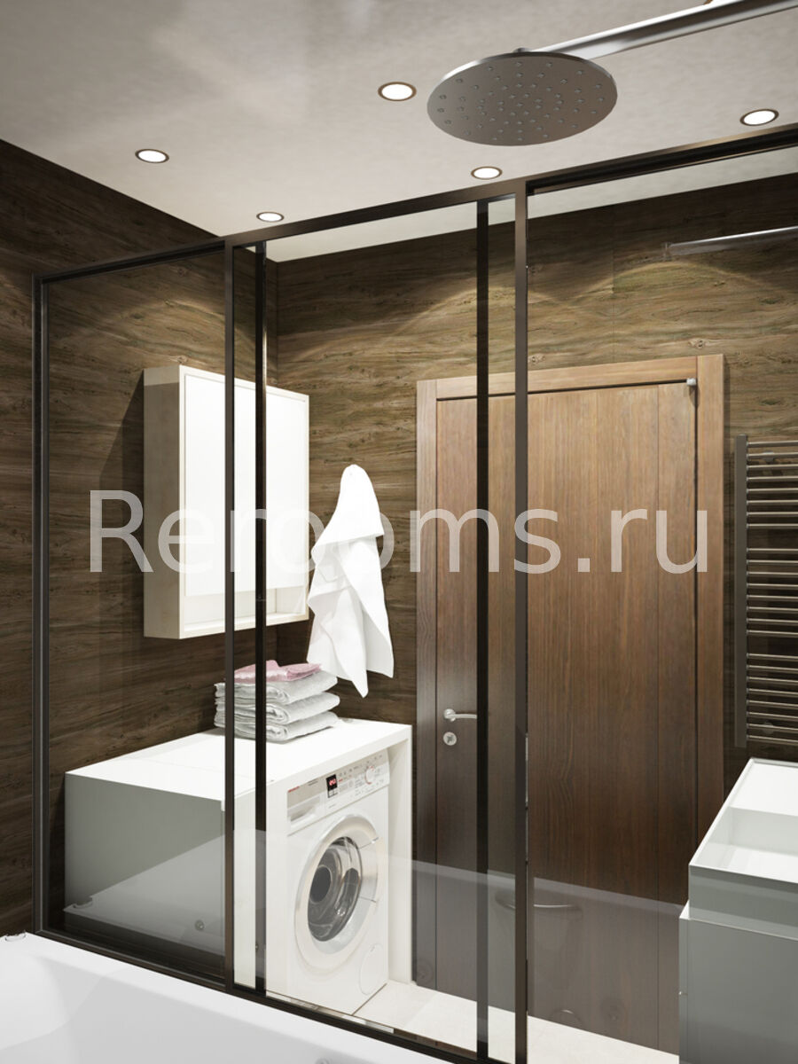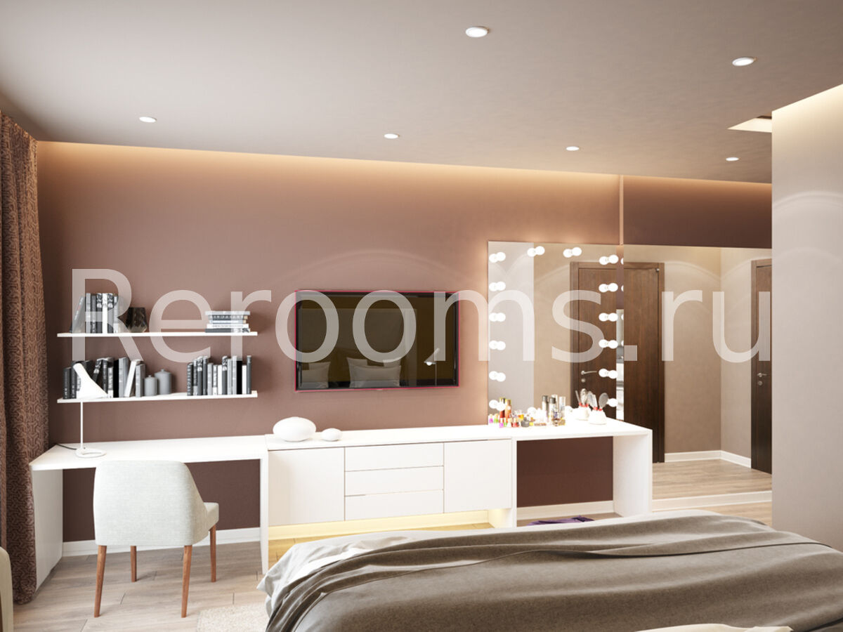 Проект данной квартиры выполнен в сдержанных тонах, здесь преобладают белый и различные оттенки коричневого.