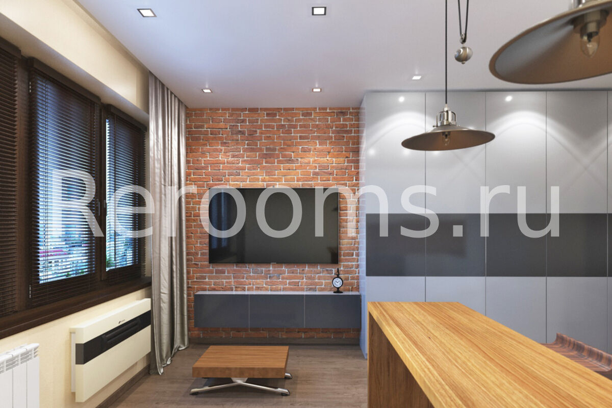 В интерьере преобладают характерные для лофтовой стилистики цвета, такие как терракотовый, коричневый и серый.