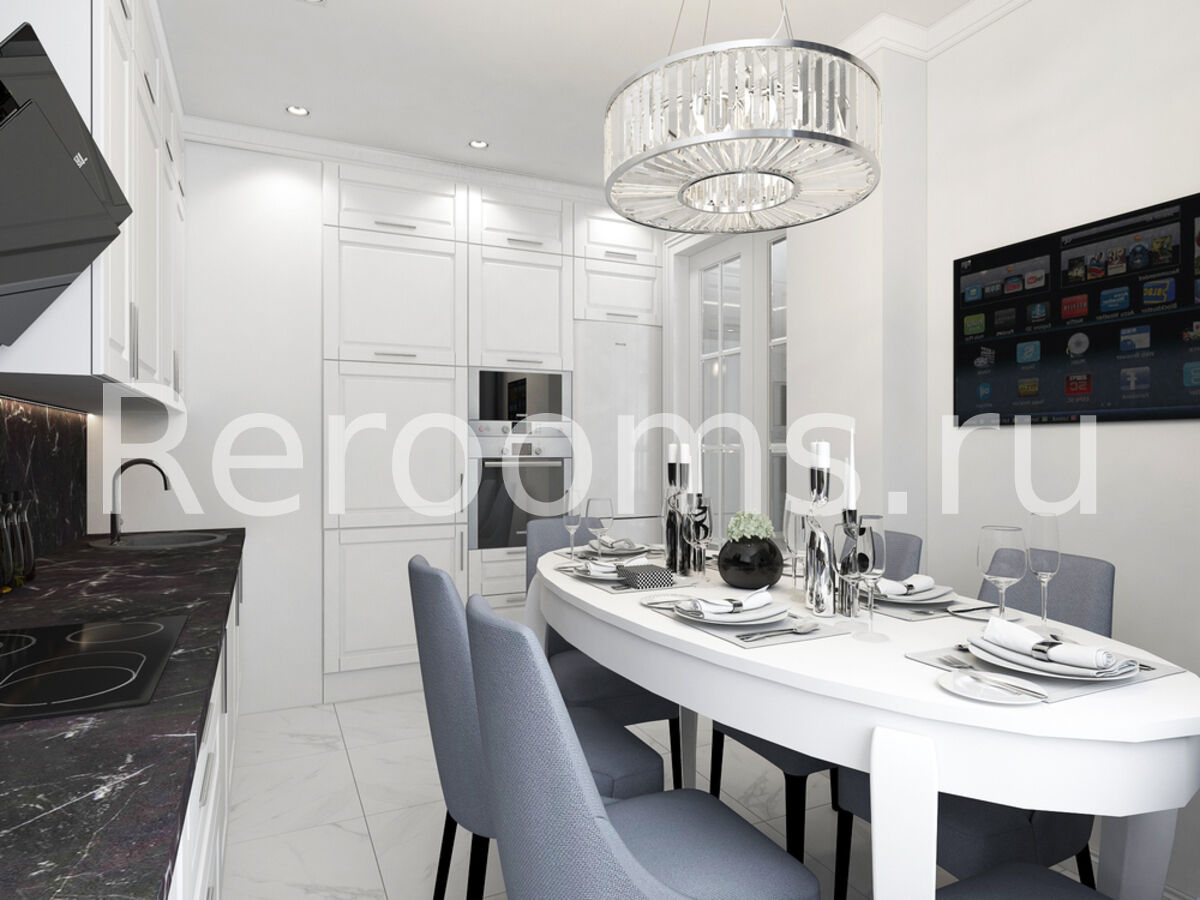 В дизайн-проекте трехкомнатной квартиры четко прослеживаются черты, присущие этому стилю. Красивая эргономичная мебель, изящные элементы декора, элегантность в отделке интерьера - все это формирует ту самую неповторимую атмосферу спокойствия и умиротворения, присущую неоклассике.