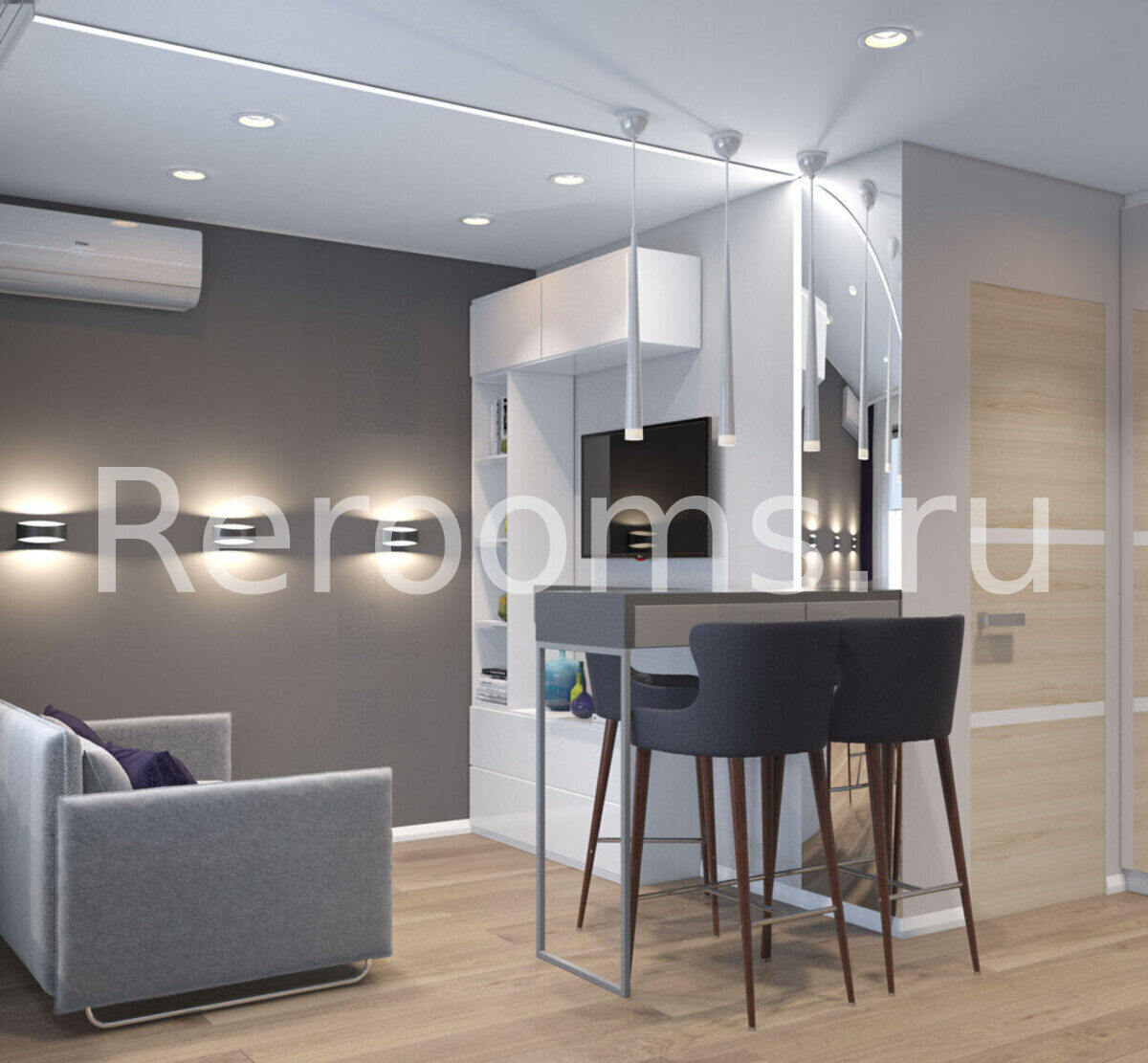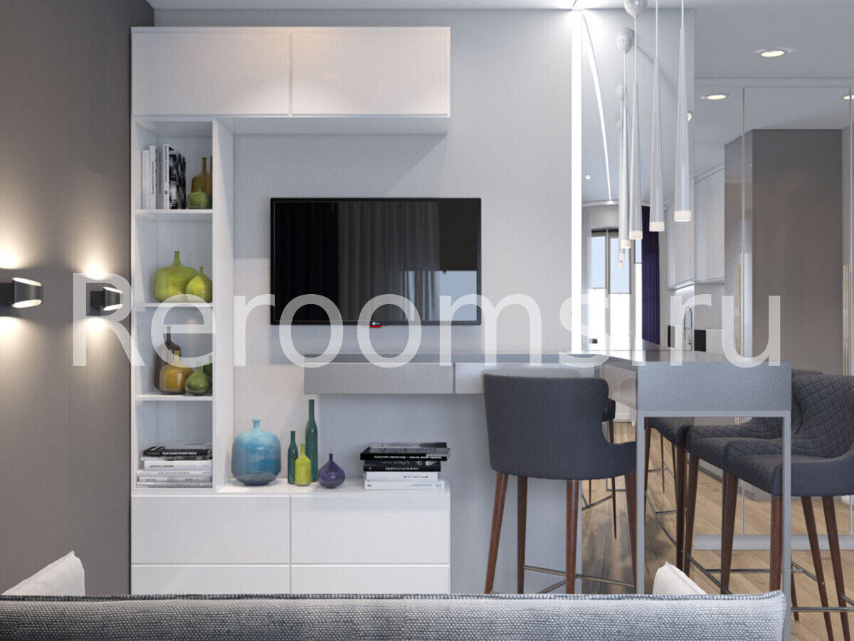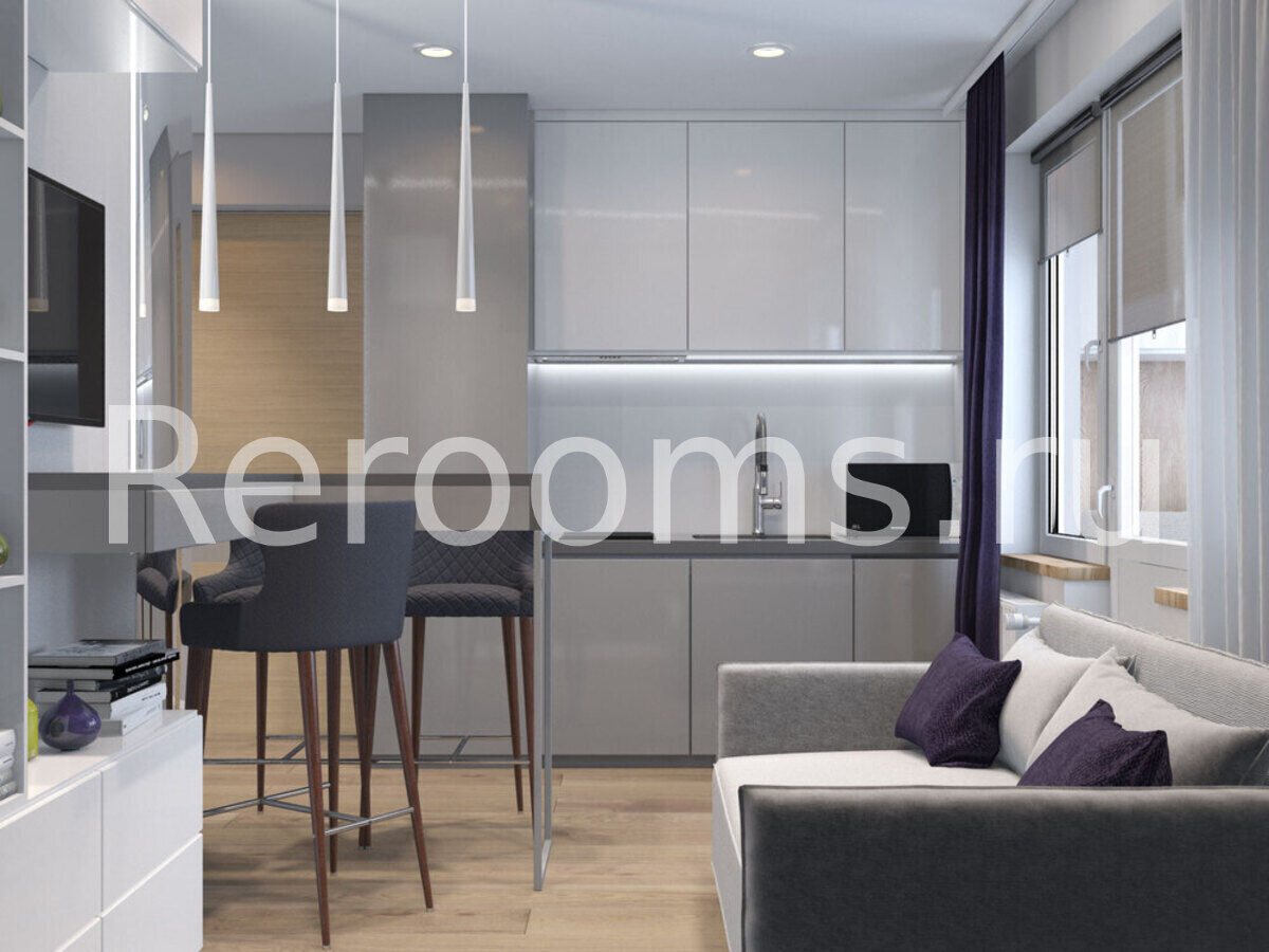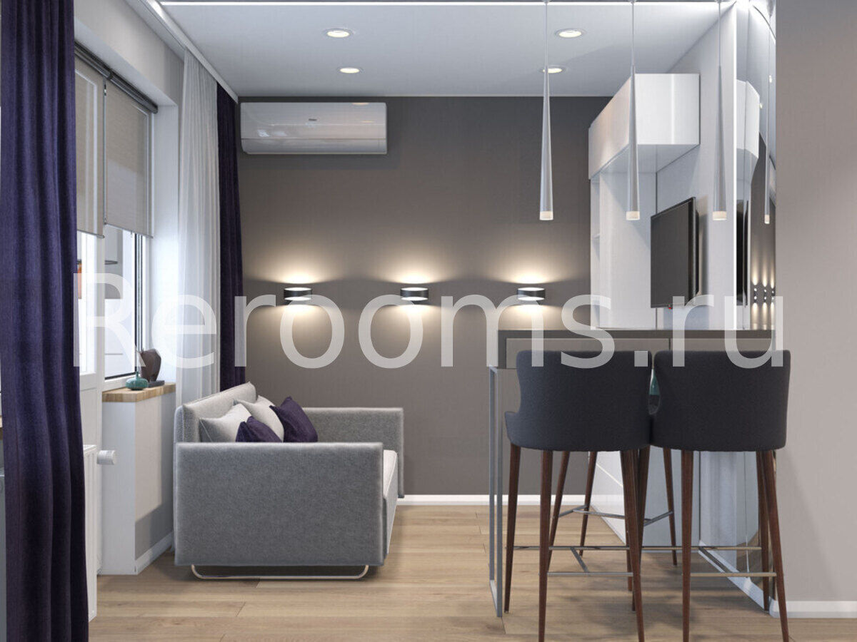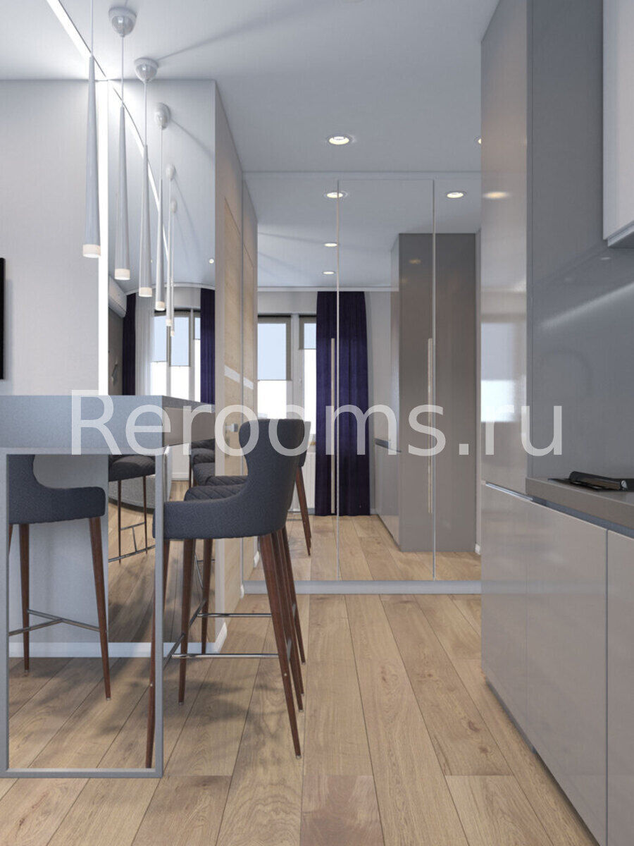 Дизайн-проект этой квартиры-студии выполнен в стиле минимализм. Светлые тона с темными насыщенными акцентами, лаконичные линии и простые архитектурные формы создают в интерьере ощущение простора и свободы. Здесь нет ничего лишнего и каждый предмет идеально вписан в пространство. Особое место в квартире отведено свету. Разноплановые светильники наполняют ее мягким светом и, элегантно отражаясь в глянцевых фасадах, формируют атмосферу чистоты и уюта.