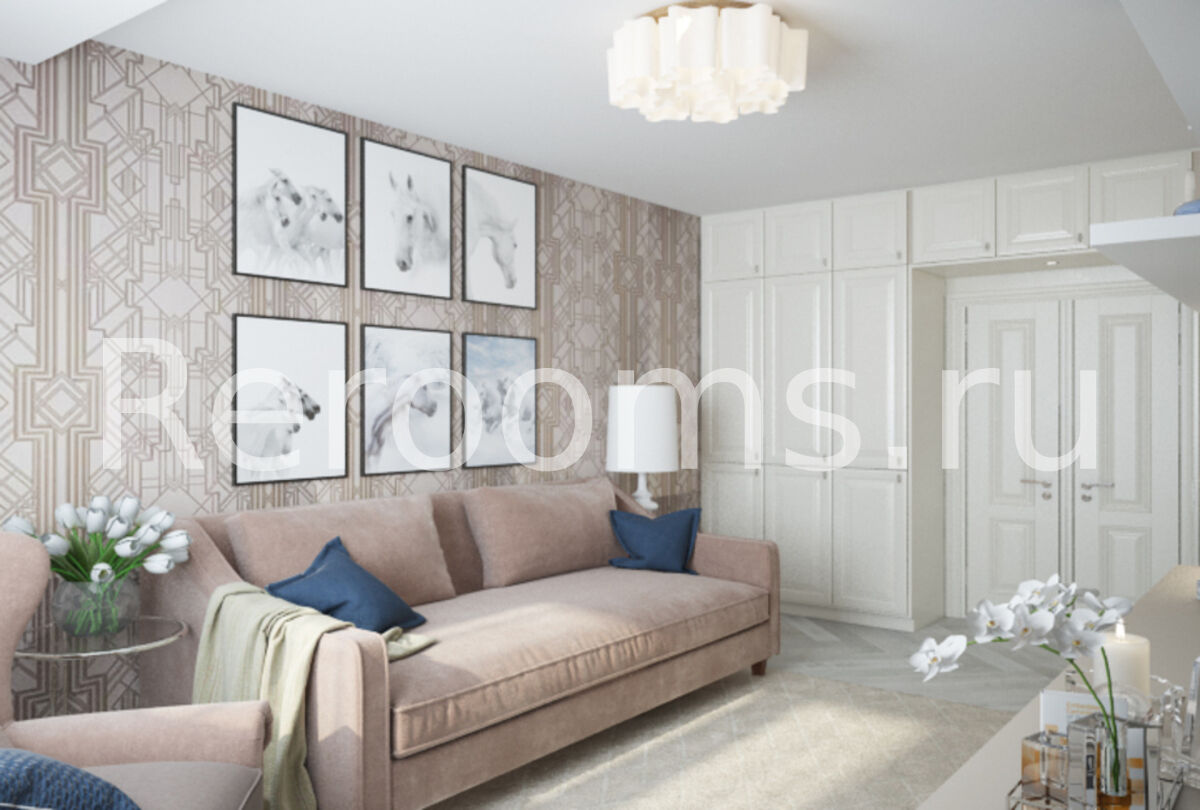 Интерьер этой двухкомнатной квартиры получился невероятно изящным и изысканным. Красивая цветовая гамма, классические элементы декора и сложные архитектурные формы - все это придает помещению определенный шарм и формирует в нем атмосферу гармонии. Изысканная мебель функциональна и идеально вписывается в концепцию интерьера.