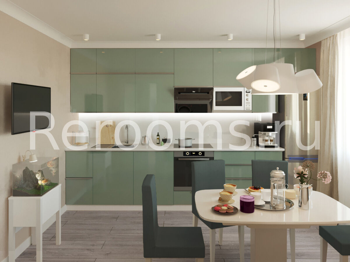Интерьер трехкомнатной квартиры выполнен в светлой гамме с насыщенными цветовыми акцентами. Особое внимание в интерьере уделено освещению. В каждом помещении своя стильная модель светильника, дополненная встроенным светом. В целом интерьер смотрится очень гармонично и целостно.