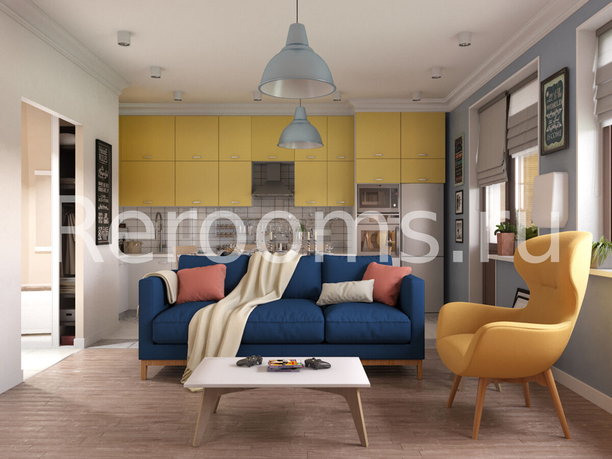 Разрабатывая проект этой квартиры, дизайнеры руководствовались основными правилами скандинавского стиля. Интерьер нужно было сделать максимально просторным, уютным и функциональным. В качестве основных тонов отделки выбрали светлые цвета, разбавив их яркими стильными акцентами. Для всех помещений подобрали удобную мебель лаконичных форм. Помещение спальни очень гармонично. Благодаря дизайнерским решениям здесь царит атмосфера покоя и умиротворения. Функциональный кухонный гарнитур идеально вписан в пространство и полностью соответствует выбранной стилистике.